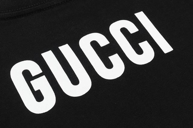 Style No.: 873, Gucci New Arrival! Early Spring Collection High-Weight Short-Sleeve T-Shirt. Made with custom-supplied 100% pure cotton knit fabric, the material is delicate to the touch, thick and textured. The high-density machine weaving process creates a soft, comfortable, and bouncy feel, like cotton wool. It has a crisp texture and looks great on. The exquisite and full-bodied design perfectly showcases the brand's high-end style. It looks great whether worn alone or layered. The loose fit makes it easy to wear. Sizes: S (Recommended for 80-120 lbs), M (Recommended for 120-145 lbs), L (Recommended for 140-165 lbs), XL (Recommended for 160-190 lbs). Available Color: Black.