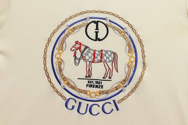 Style No.: 875, Gucci New Arrival! Early Spring Collection High-Weight Short-Sleeve T-Shirt. Made with custom-supplied 100% pure cotton knit fabric, the material is delicate to the touch, thick and textured. The high-density machine weaving process creates a soft, comfortable, and bouncy feel, like cotton wool. It has a crisp texture and looks great on. The exquisite and full-bodied design perfectly showcases the brand's high-end style. It looks great whether worn alone or layered. The loose fit makes it easy to wear. Sizes: S (Recommended for 80-120 lbs), M (Recommended for 120-145 lbs), L (Recommended for 140-165 lbs), XL (Recommended for 160-190 lbs). Available Color: Apricot.