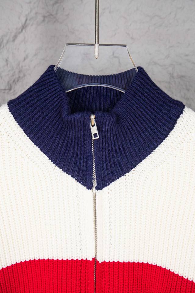 Style No.: M279 Ddd Top-tier Gucci 22Fw Double G Color Block Zipper Knit Sweater Cardigan DDD Made of 240% fine cotton, the yarn color is dyed to match the original. After customizing the yarn, it is all twisted and then spliced to achieve the same twist and stiffness as the original. High-density double G embroidery on the chest. The knitted pieces are then hand-sewn, with hand-picked pockets. After washing, detergent and reinforcement are added. The 7-needle jacquard process produces clear, textured yarn. Imported machines are used for knitting this garment, which is particularly time-consuming. The stitching is done by hand in a circular pattern, with hand-picked stitches. The zipper backing is modified to a 14-needle four-flat patch. Taiwanese washing materials are used. Custom-made accessories with three labels! Ddd Sizes: SML Ddd
