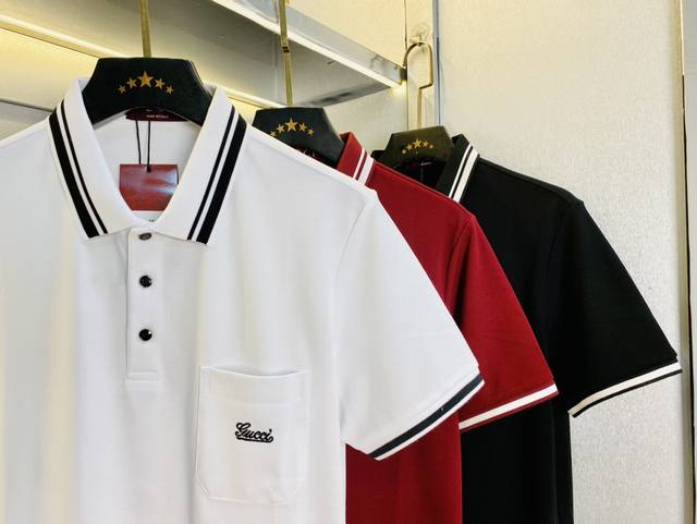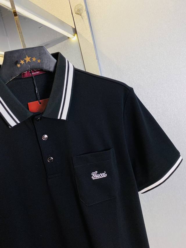 Suitable for 200 lbs. Gucci original quality 2025 latest short-sleeved polo shirt with lapel. Selected boutique custom-made top-grade mercerized cotton imported fabric. All details and workmanship are perfect. 1:1 replica of the authentic product. 100% original hardware, high-end custom accessories, original factory labels. Superb fit. Sizes M-3XL.
