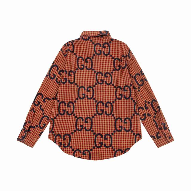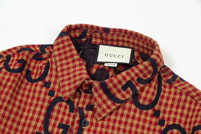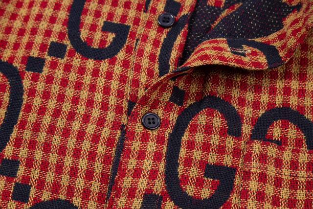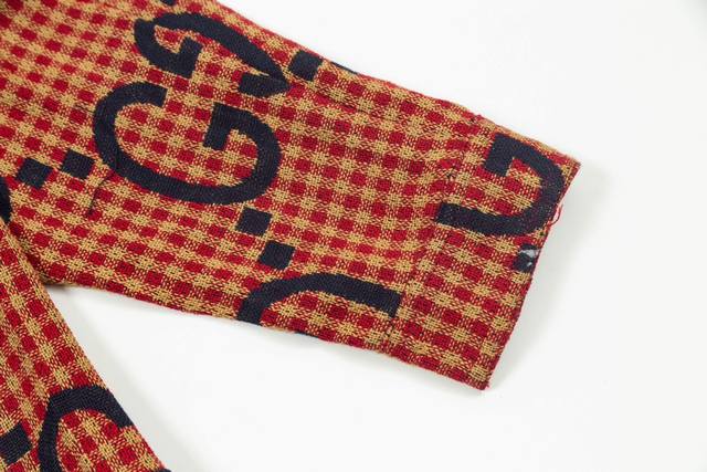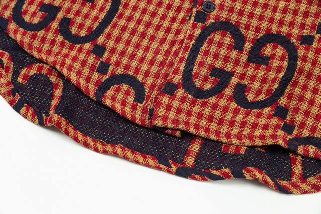 Gucci 24Ss red and blue plaid double G jacquard cotton and linen long-sleeved shirt, correct version