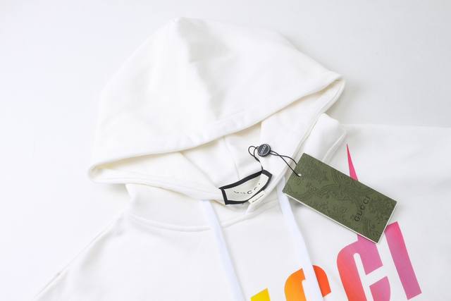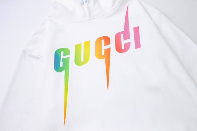 Top-tier detailed version. Official quality. #Gucci##Razor##Rainbow#Gucci 2025 latest razor rainbow colorway printed hoodie, different from market goods, official original, custom 32-count double-yarn pure cotton hoodie fabric, 460g, soft and delicate to the touch yet more substantial than ordinary cotton fabric, comfortable, breathable and not easily deformed, using imported nano-printing, precision screen printing makes the print more three-dimensional, clear and detailed, original accessories 1:1 complete with three labels, hand-stitched woven label, replicating the boutique, loose fit, unisex, official quality. Sizes: Xs L Color: Off-white