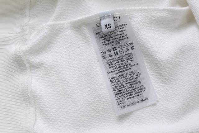 Top-tier detailed version. Official website quality. #Gucci##Belt Print##Sequins#Gucci 2025 latest belt with printed logo sequins embroidery, official original, custom 32-count double-yarn pure cotton oversized sweatshirt fabric, 460g, soft and delicate to the touch yet more substantial than ordinary cotton fabric, comfortable, breathable and not easily deformed, using imported nano-printing, precision screen printing makes the print more three-dimensional, clear and detailed, original accessories 1:1 complete with three labels, hand-stitched woven label, replicating the boutique, different from market goods, loose fit, unisex, official website quality. Sizes: Xs L Color: Off-white