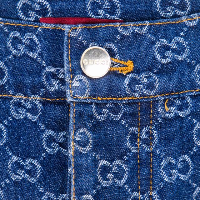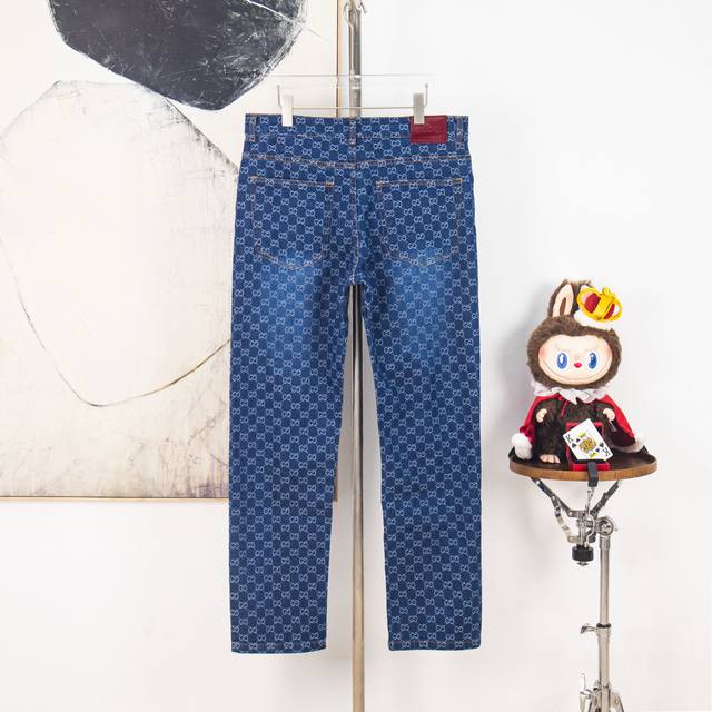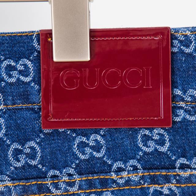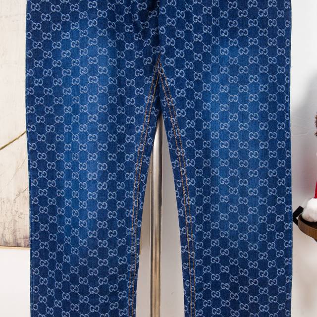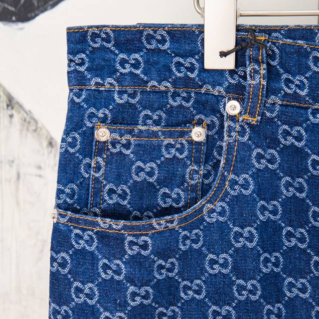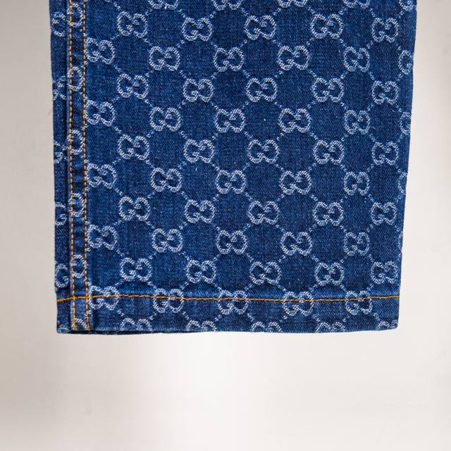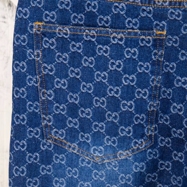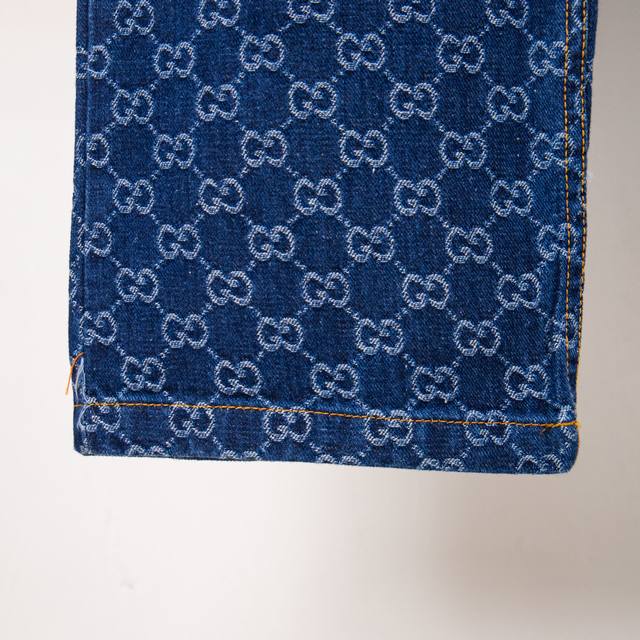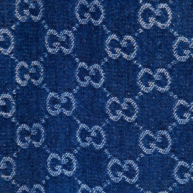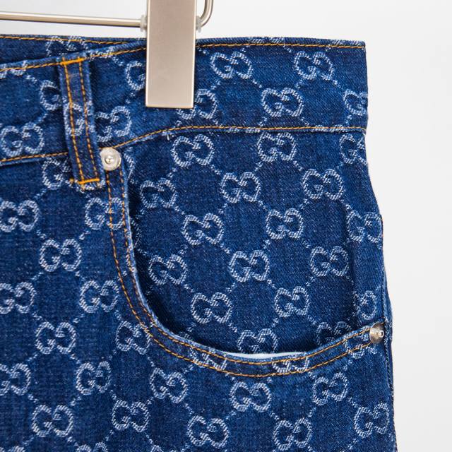 Gucci 2025Ss All-over Embroidered Gg Denim. The 2025Ss early autumn collection uses a deep blue tone, subtly embellished with elegant floral embroidery, embossed logos, and other craftsmanship details, showcasing the brand's charm. This denim piece is crafted from denim fabric and meticulously adorned with the iconic interwoven Gg lettering pattern.