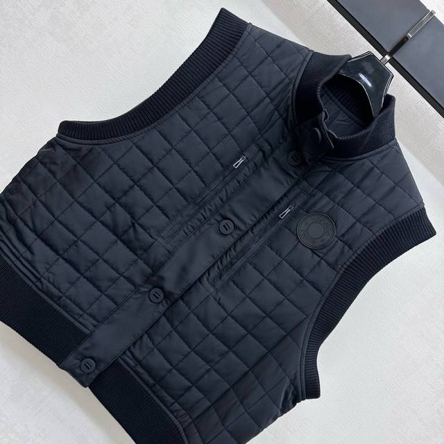 Herme* 2025 new arrivals. Custom-made plaid down vest with imported YB nylon lining and down filling for lightweight warmth. Button-opening high collar and all-over checkered embossed texture add layered styling. Signature engraved lettering badge on the chest accents the brand's signature style. Threaded elastic edging for a snug fit and easy on and off. Details that defy the dullness of the exterior and accessories. Stand-up collar and stylish fit for fall and winter wear. High-end version.