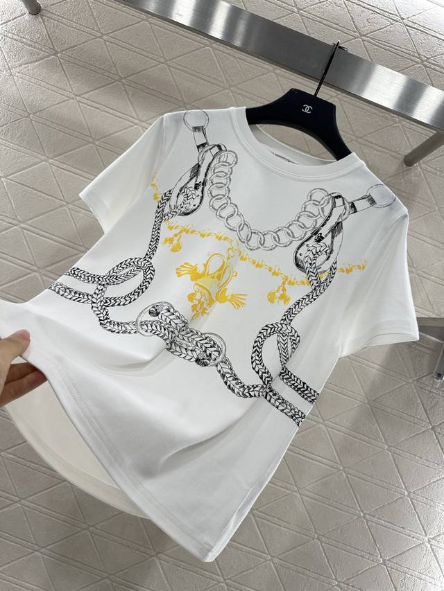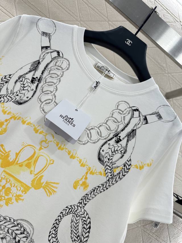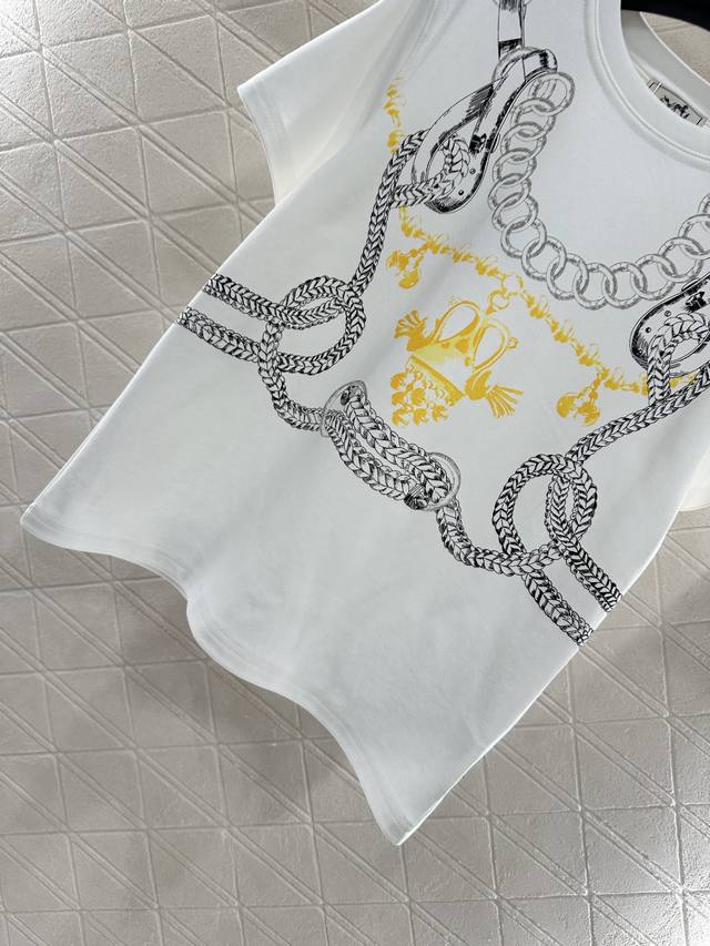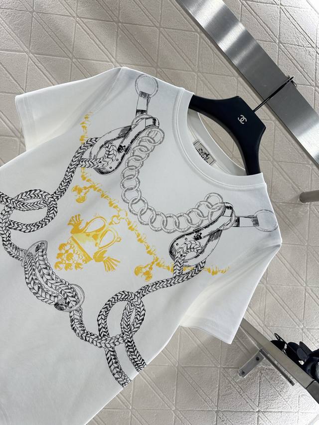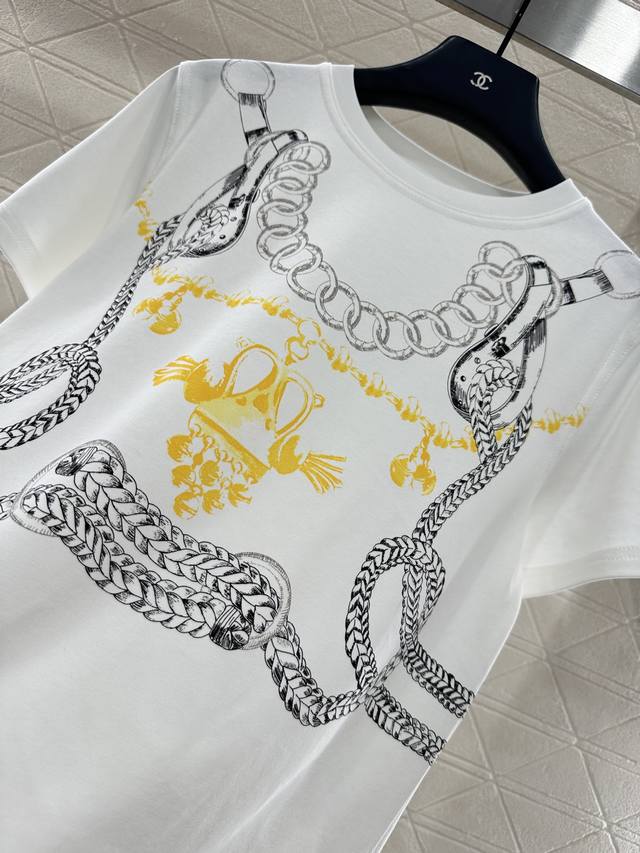 Herme* 2025 New Arrivals Round Neck Chain Print Custom Yb Mercerized Cotton Mat
