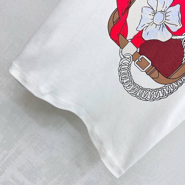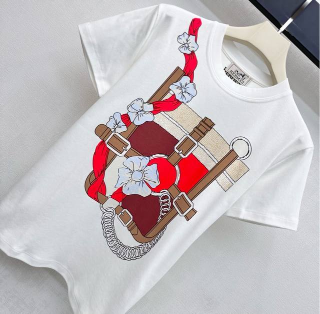 Herme*2025 New Arrival: Crew Neck Logo Print Custom Yb Imported 100% Cotton Material, Breathable, Comfortable, and High-Quality . The chest features a vibrant floral print with a matching belt buckle and logo, adding a touch of style. The inner neckline is adorned with signature letter prints, showcasing the brand's identity. Developed fabrics and accessories. Crew Neck Short Sleeve T-Shirt. Artistic cut, rich in layers. Perfect for wearing alone or layering. Stylish and fashionable. DDD High-Version DDD