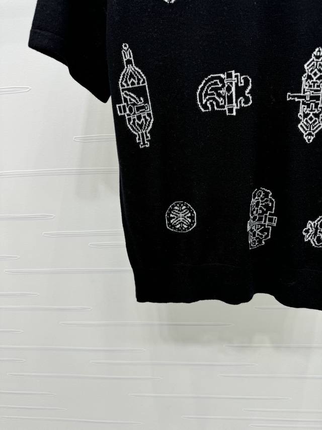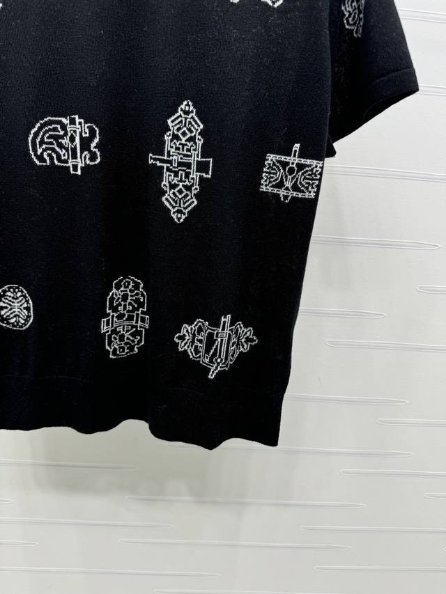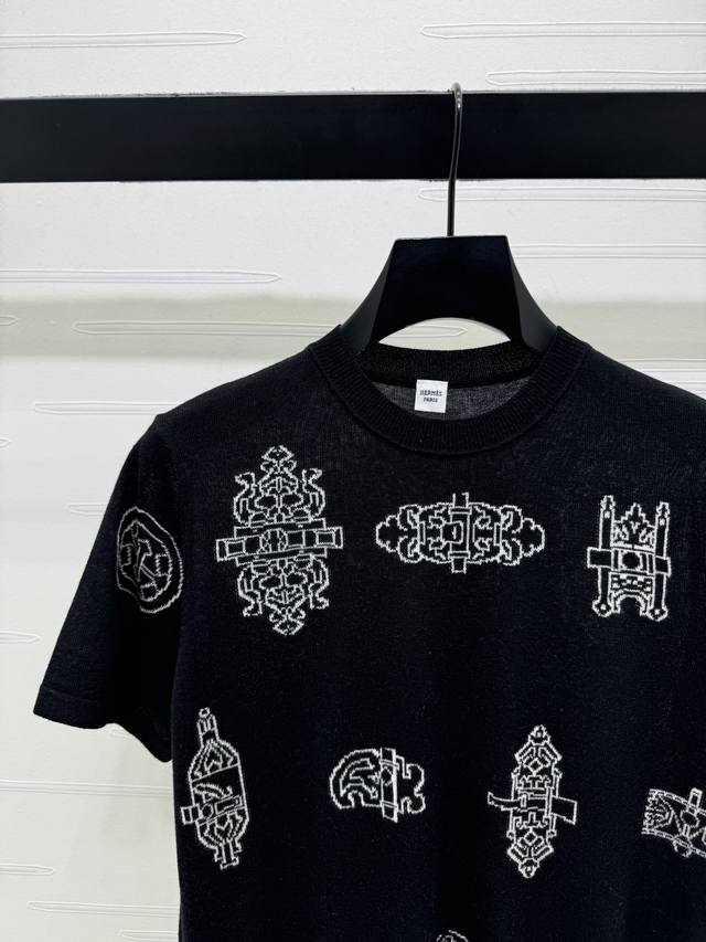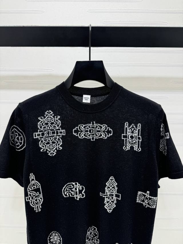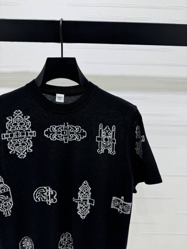 New Arrival! High-Quality Original Hermes* 2026 Early Spring Collection! This all-over print knit short-sleeved top is made of lightweight and breathable knit fabric, super comfortable for all seasons! Unique geometric and botanical patterns, available in off-white and black, versatile and stylish. The loose fit is flattering for various body types, easily paired with jeans or casual pants for a fashionable look. Perfect for everyday wear or vacations , comfortable and stylish! 2 colors! Sizes SM-L3! High-quality bulk order A706B360C DDD