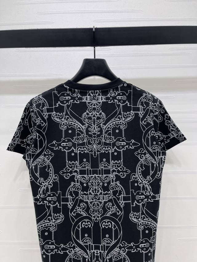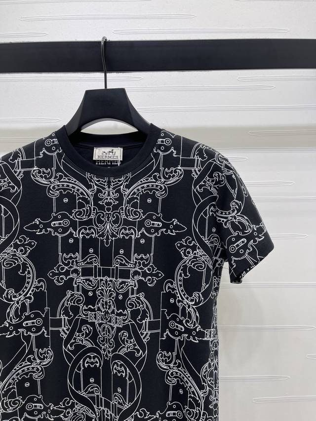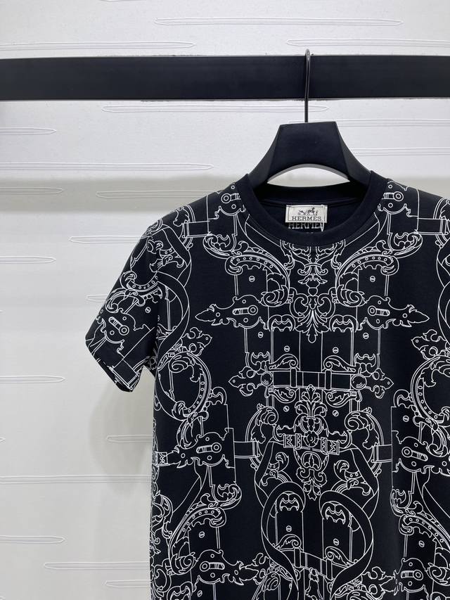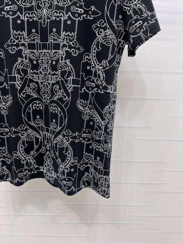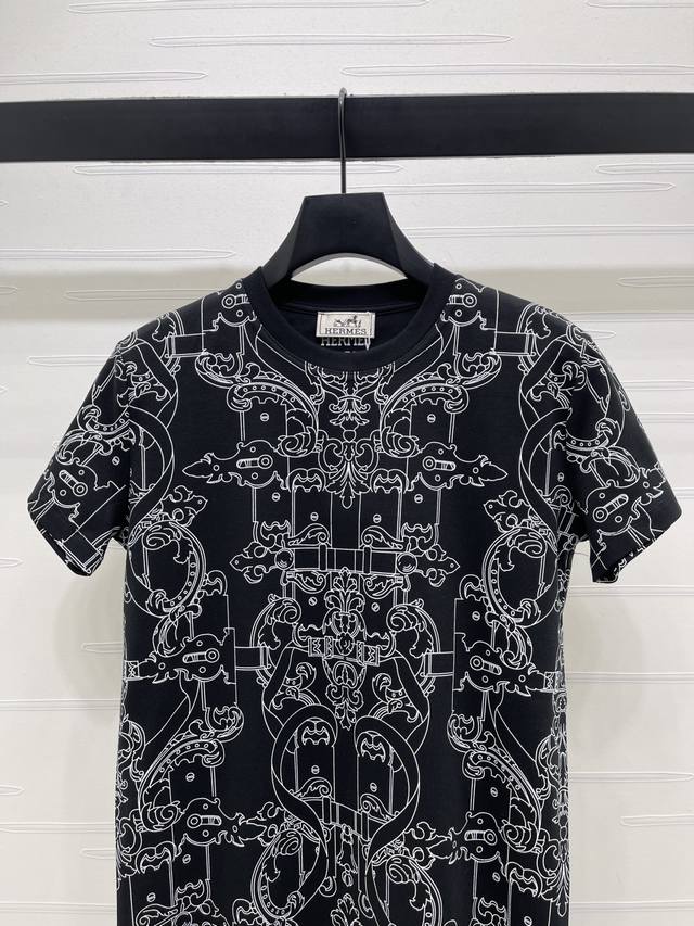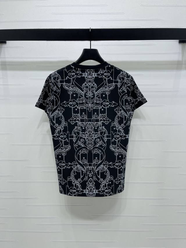 New Arrival! High-Quality Original Hermes* 2026 Early Spring Collection! This T-shirt features a black and white retro print design, incorporating architectural and botanical elements for a strong artistic feel. The breathable and comfortable fabric is perfect for summer! Raglan sleeves enhance freedom of movement, and the loose fit is forgiving and suitable for all body types. A must-have for everyday casual wear; easily achieve a retro-chic look by pairing it with jeans or casual pants! 2 colors! Sizes SM-L3! High-quality bulk order A706B260C DDD
