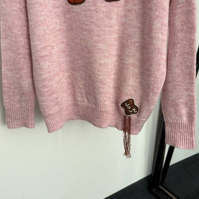 Style No. 20258185 Herme* New Cute Pony Embroidery Long-Sleeved Knit Sweater, Pink, One Size: Shoulder Width 56cm, Bust 116cm, Sleeve Length 55cm, Length 71cm; Weight: 0.440Kg. DDD