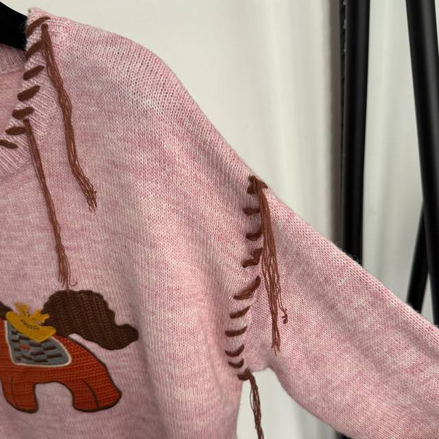 / Style No. 20258185 Herme* New Cute Pony Embroidery Long-Sleeved Knit Sweater, P