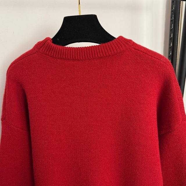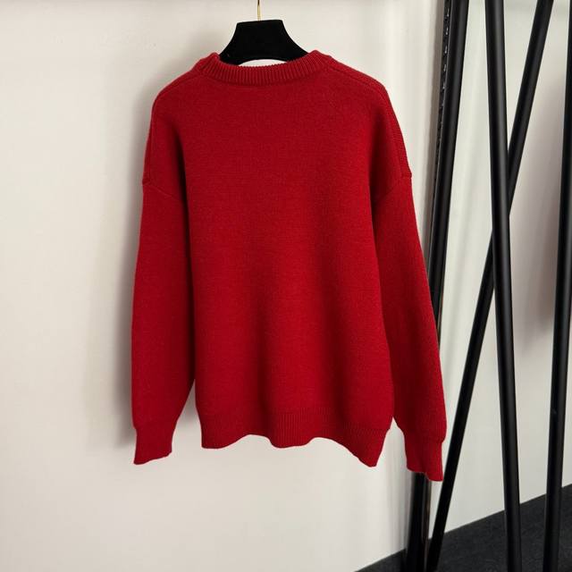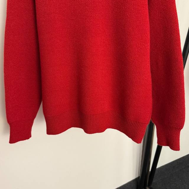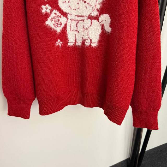 Style No. 20258190 Herme* New Lucky Pony Pullover Long-Sleeve Knit Sweater, Red, One Size: Shoulder Width 59cm, Chest 114cm, Sleeve Length 51cm, Length 66cm; Weight: 0.650kg. DDD