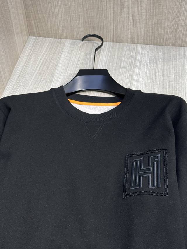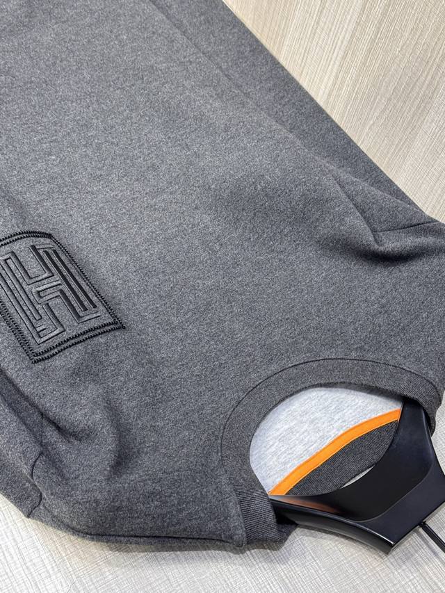 Aima's latest 2025 Fall/Winter men's cashmere crewneck sweatshirt with arched bridge embroidery and H logo. This traditional crewneck pullover features the iconic "H" logo on the chest, crafted using high-end, heavy-duty 3D arched bridge embroidery, creating a rich, defined shape. This complements the horse head embroidery on the right cuff, showcasing high-quality details and ensuring a strong brand identity. The slightly loose fit is versatile, creating a uniquely sophisticated and powerful look. Wear it as a regular outerwear piece in spring and fall, or layer it with a coat or down jacket in winter. No matter how you style it, you'll look stunning and stylish! This exclusive, special wool fabric from AIMA is a rare find in sweatshirts. This new AIMA fabric is truly exceptional, a true leader in the sweatshirt world! It has the plush texture of a sweater and the skin-friendly comfort of a sweatshirt. It feels soft and sticky, yet crisp and stylish. It has good elasticity and is naturally stretchable when worn. It also has good warmth retention and will not fade or deform after long wear and washing.