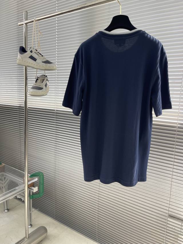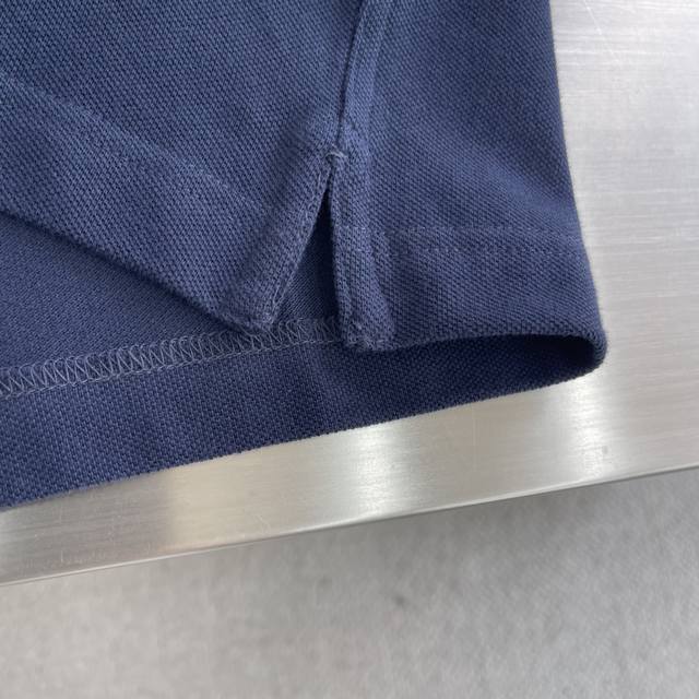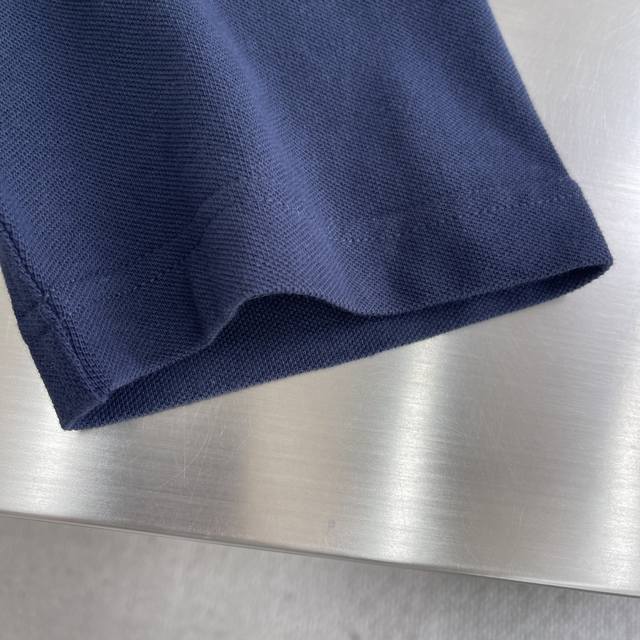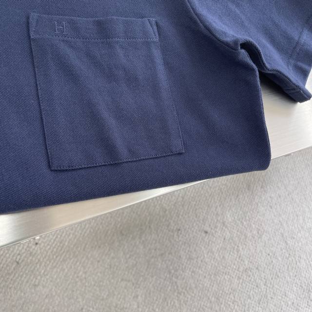 Herme 25Ss new piqures Sellier collar solid color short-sleeved T-shirt navy bl