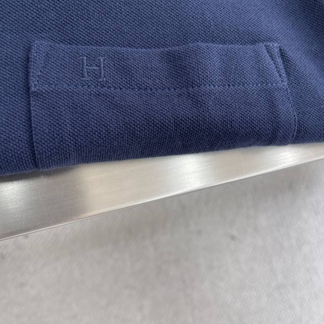 / Herme 25Ss new piqures Sellier collar solid color short-sleeved T-shirt navy bl