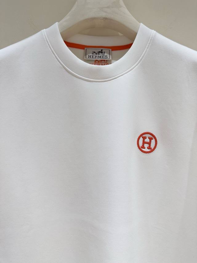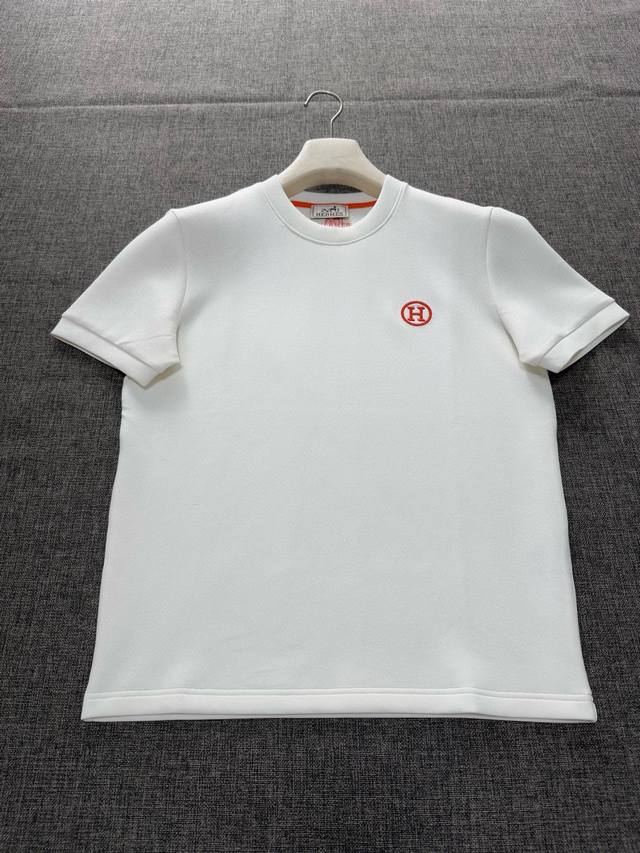 Hermes 2025 Autumn/Winter Crew Neck Short Sleeve T-Shirt Base Layer! The elemental logo badge highlights its casual and fashionable charm, still leading the fashion trend. A perfect inner layer. Made with high-count stretch knit 100% liquid ammonia air-layer fabric, the smooth and even knit is lightweight, refreshing, soft, comfortable, and highly breathable. Simple yet uniquely charming. The straight cut is perfect for pairing with various trendy styles. Machine embroidery adds a delicate and full texture, bringing a new experience to fashionable sportswear and casual wear! Sizes: M-3XL. A person who is 178cm tall and weighs 140kg wears L. Maximum weight: 200kg.
