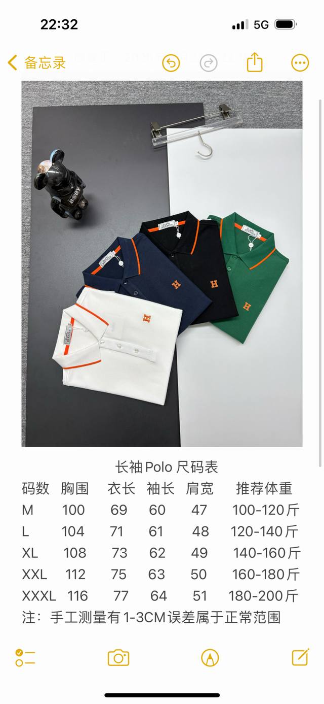 / Hermes New Embroidered Long-Sleeve Polo Shirt Original Fabric, Official Same Sty