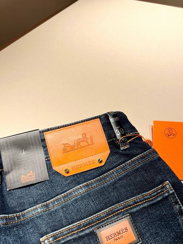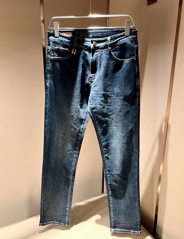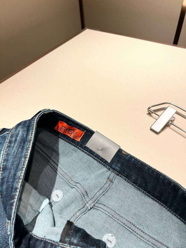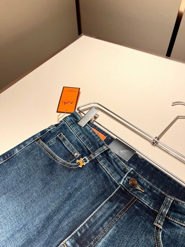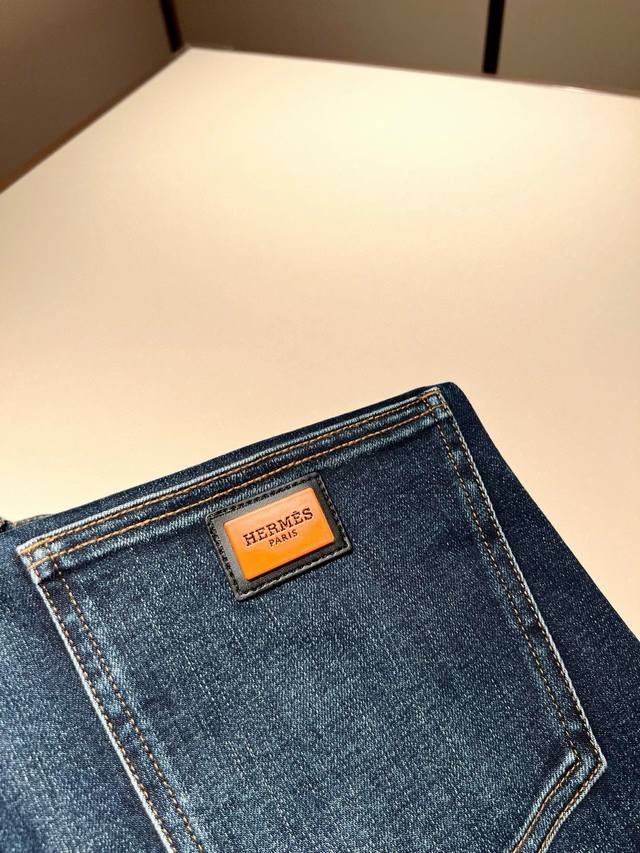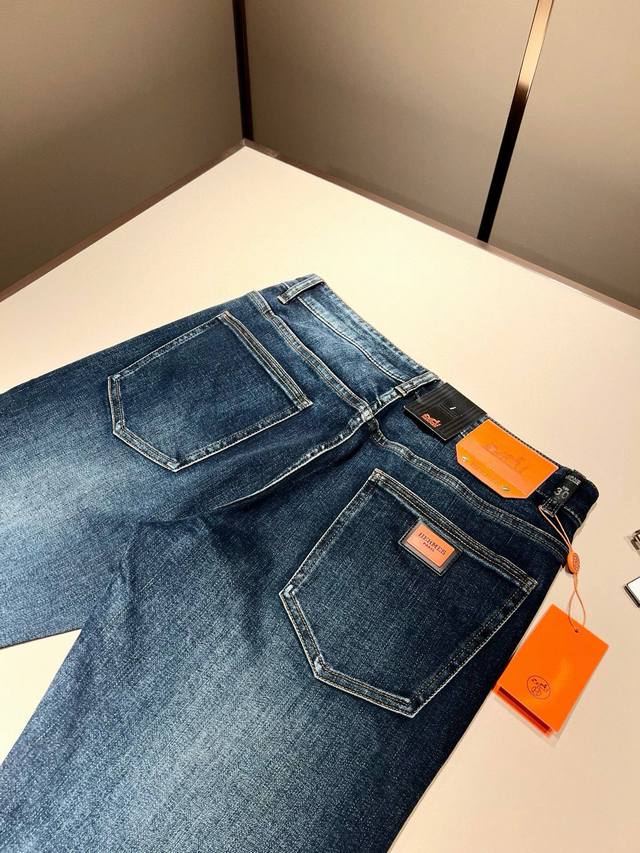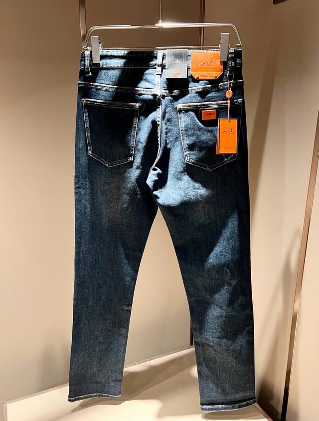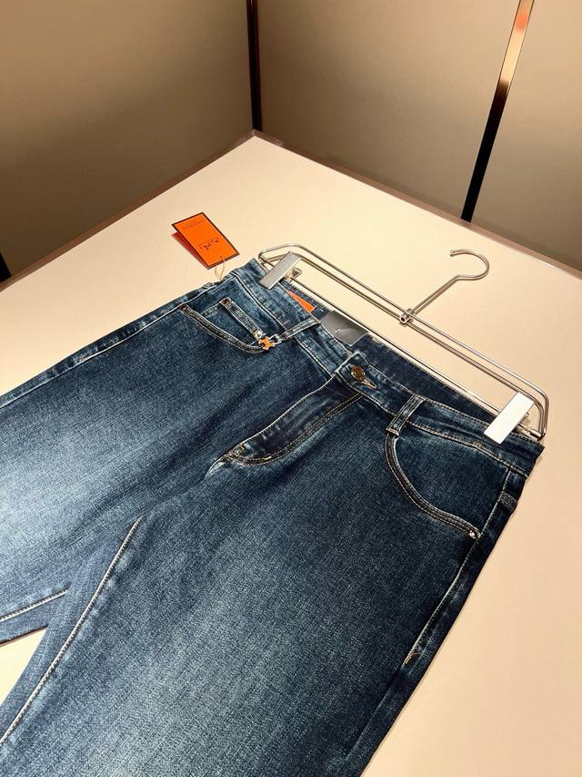 Herm*S 2025 Autumn/Winter Men's High-End Washed Slim Straight Leg Jeans, Overseas Trading Company Channel Order! Men's Slim Fit Straight Leg Jeans! Available at Shanghai Henglong Store! High-end and simple, with exquisite craftsmanship and materials, demonstrating a rigorous and demanding pursuit of quality, proving its brand image through every detail! A typical essence of Herm