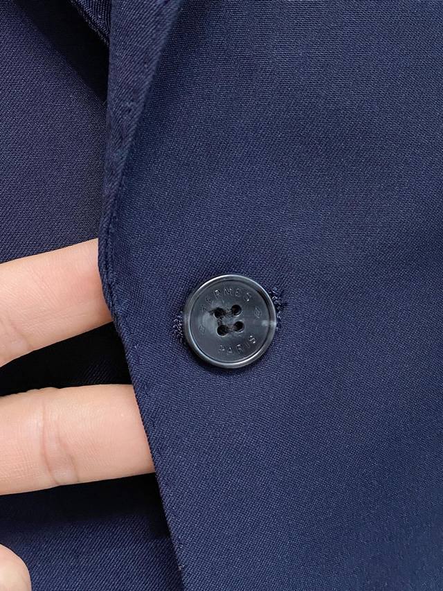 follows the H family's modern minimalist theme, featuring a stylish two-button design, simple faux pocket details, and natural Spanish horn buttons. Each button has a unique texture and is engraved with the brand's monogram, creating a refined and striking silhouette. The clean, sleek silhouette easily accentuates a stylish and fashionable look, creating a sophisticated and relaxed look.