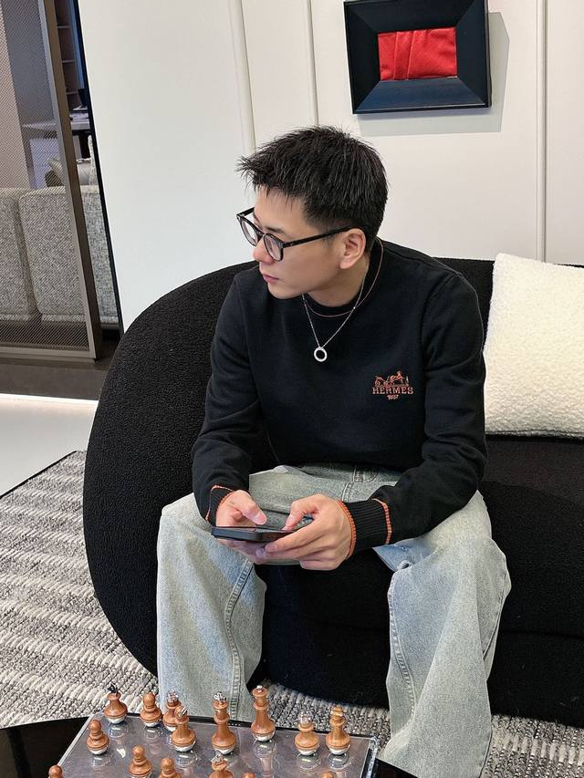 New Arrival! Hermes Sweater, 2025 Fall/Winter Collection. Top-quality replica, 1:1 from the boutique, in perfect condition! Thickened version, a must-have for trendsetters! Those in the know, grab it now! Fabric: 10% cashmere, 60% wool, 30% spandex. Sizes M-3XL. Multiple colors available.