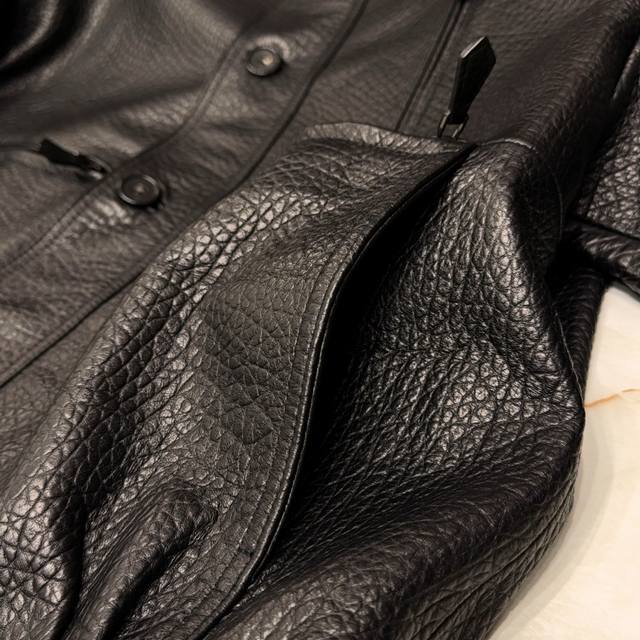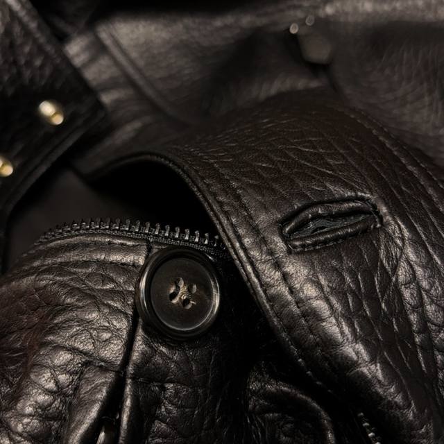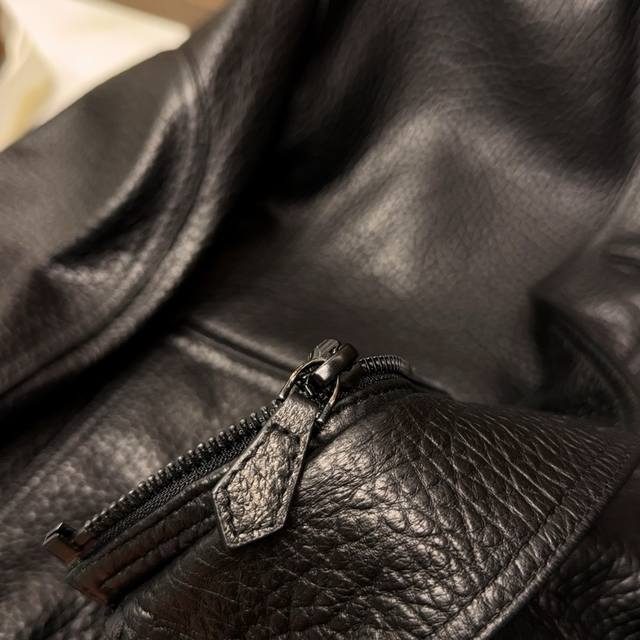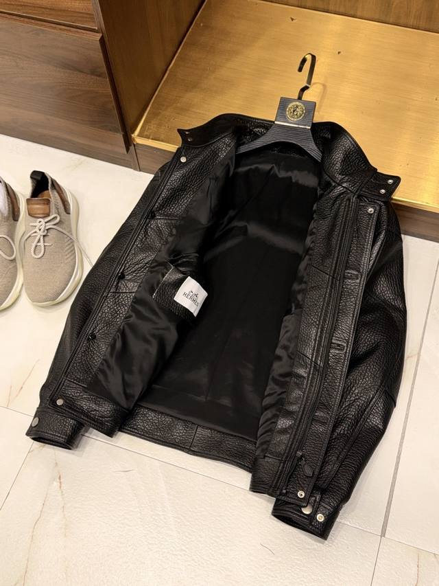 inherits H-brand's classic stand-up collar motorcycle design. The collar exudes a cool presence when raised, while relaxed for a casual look, effortlessly balancing street chic with retro flair. Crafted with original materials, the jacket features exquisite details, from the zipper to the buckle, ensuring smooth opening and closing, ensuring both durability and aesthetic appeal. The