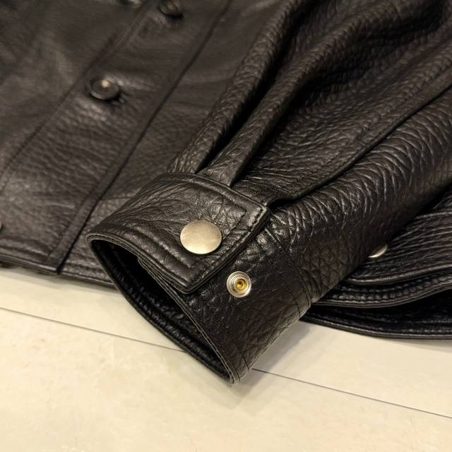 is crafted from premium lychee-grained sheepskin, a fine, grainy leather with a soft, yet not stiff feel. It develops a unique luster with wear, offering both comfort and premium quality.