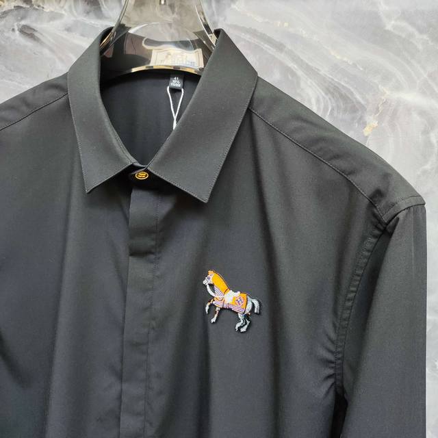 Hermes 2025 Spring/Summer New Long-Sleeved Shirt, High-End Version! Custom-made fabric for superior breathability and comfort, impeccable details, brand elements and design concepts embodying high quality. Delicate and soft to the touch! Presents a casual cut, with a fantastic fit! Sizes: 39-45, M-5XL. Please provide your height and weight when ordering. Maximum size is 190 lbs. Ships the next day.
