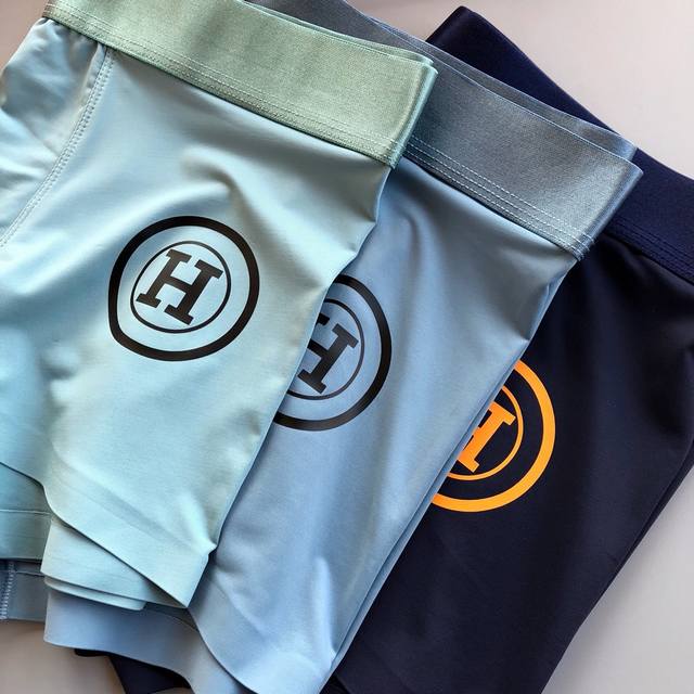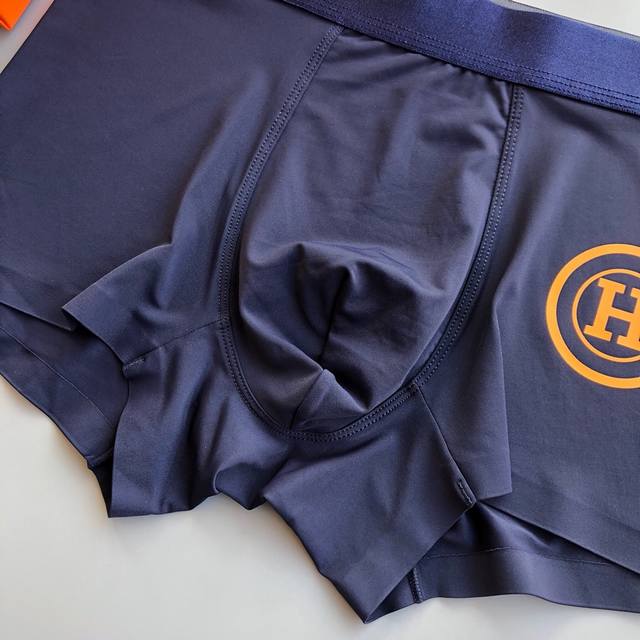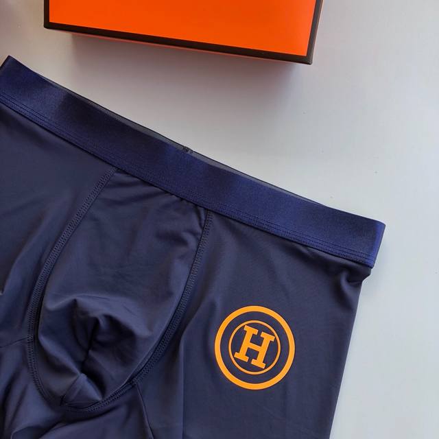 Hermes premium men's underwear, boxed set! Lightweight and breathable design, made with imported lightweight ice silk. The smooth, seamless cut ensures a comfortable, unrestricted fit. Soft and skin-friendly to the touch, with smooth lines and a second-skin feel. Three pairs per box, sizes L-XXL, up to size 38. Note: Underwear and socks are sensitive items and cannot be returned or exchanged.