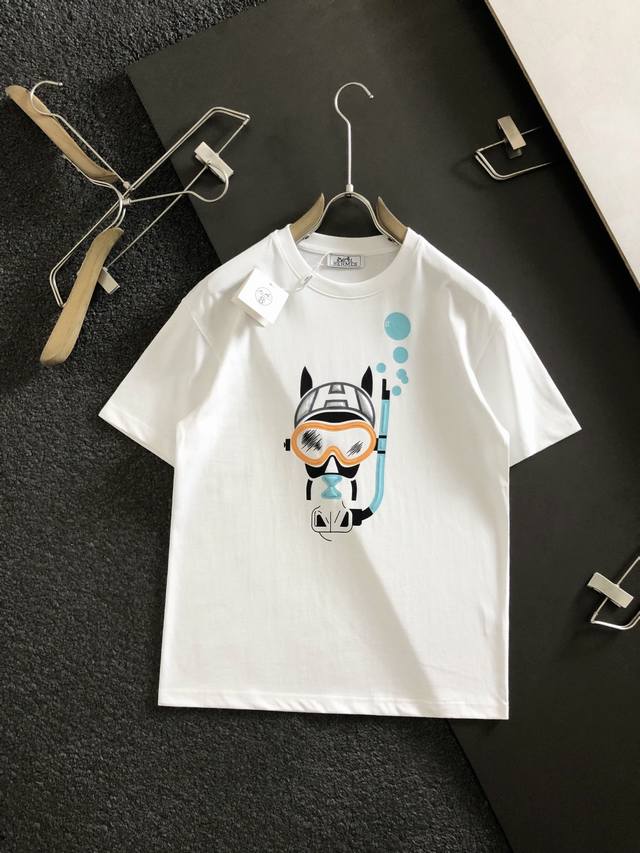 Hermes Ddd Top-quality black 3D printed cartoon diver logo crew neck short-sleeved shirt, featuring letter print on the back using premium Carolina fabric. A fusion of top-tier elements, this classic short-sleeved shirt includes all three brand labels. A trendy and stylish choice for men, its unparalleled comfort makes it a summer essential. Sizes S-XXL DDD