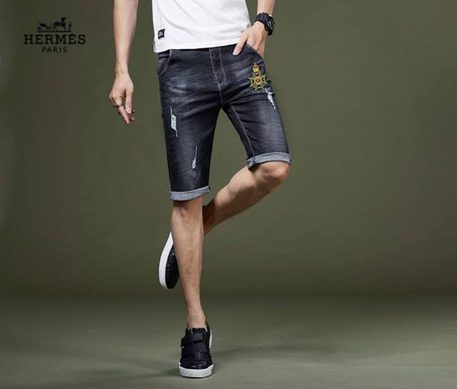 Store's Top Pick! Hot Selling Item! Hermes' Latest Boutique Style! High-end fashion denim shorts that instantly transform you into a stylish oppa! Simple yet fashionable 3D tailoring, unique craftsmanship, original factory production; excellent fit, exuding confidence; every detail showcases perfect quality. The classic logo symbolizes the brand's highest quality. Owning these shorts marks the beginning of a new fashion trend. Sizes 28-38 DDD