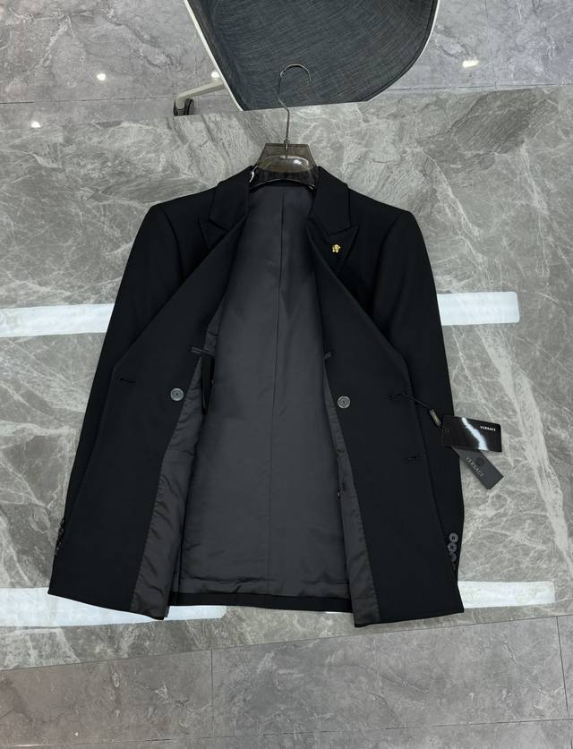 Jacket, Pants 270 Ddd Versac*Vasa 25S Men's Business Casual Suit Set, a high-end brand, a luxurious and exquisite piece, a limited edition ready-to-wear series, a frequently featured style, a celebrity-level suit! As a classic flagship piece, it has been a staple in the Vasa family for many years, a true hero among menswear items, and an extremely classic representative! A suit can be considered a hard currency, an essential item in a man's wardrobe. Owning a decent suit allows you to navigate many occasions with ease and stand out. It is the best armor for a man's image, and also a worthwhile investment for every man. Suits, with their unique properties, can be easily paired with any season, offering extremely high versatility and wearability! A high-end luxurious wool suit, a must-have in the wardrobe of any stylish man. The dignity and aura that a high-end suit can bring to a man are unmatched by any other garment, and a suit set represents the highest level of attire, an essential step for the sophisticated man! Made with premium Italian fine wool and top-quality Australian nylon yarn, this garment blends seamlessly with a golden ratio of silk, showcasing its luxurious feel. The high-density, fine fabric boasts a crisp, delicate texture and excellent wrinkle-resistant properties, along with exceptional elasticity. Exquisite details abound, with striking metallic logos on the collar and waistband, perfectly capturing Medusa's seasonal fashion design. From craftsmanship and design to fit and fabric, everything is of the highest standard. The craftsmanship is inherited from the world-renowned Belvest workshop, a leading Italian luxury goods manufacturer. The impeccably hand-stitched Milanese eyelets are textbook examples of tailoring excellence, with perfect uniformity. All edging and stitching are hand-sewn by the workshop's master tailors, and the arched seams are neat and precise, showcasing exceptional craftsmanship. Each suit undergoes over 400 meticulous steps, a truly impressive process! Classic black, both formal and casual, exudes composure, confidence, and a sophisticated aura. It excels in various settings, from work commutes and business negotiations to legal matters, making it the top choice for urban elites. Its versatility in mixing and matching is unquestionable; it's a versatile and essential piece that can handle multiple occasions. The classic Italian modern business slim-fit tailoring boasts a first-class cut, a source of pride for the product. The unique CD-style cut is the essence, perfectly flattering the figure, creating a sharp and elegant look with perfect lines that easily highlight one's temperament. It's an excellent styling tool for the season! Colors: Black, Dark Navy Gray. Sizes: M-3XL (Slim fit). Recommended size: XL (175cm, 150kg).