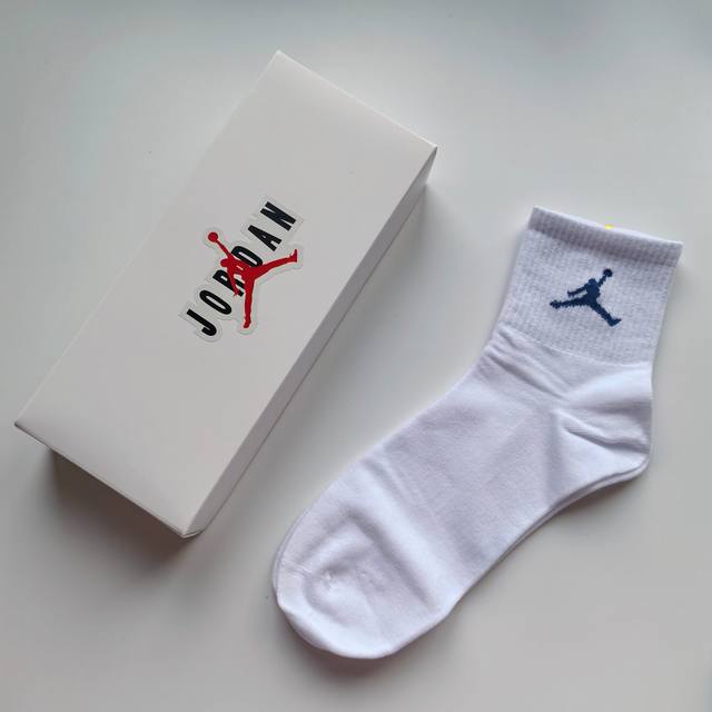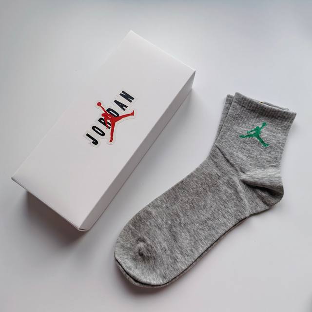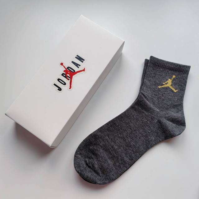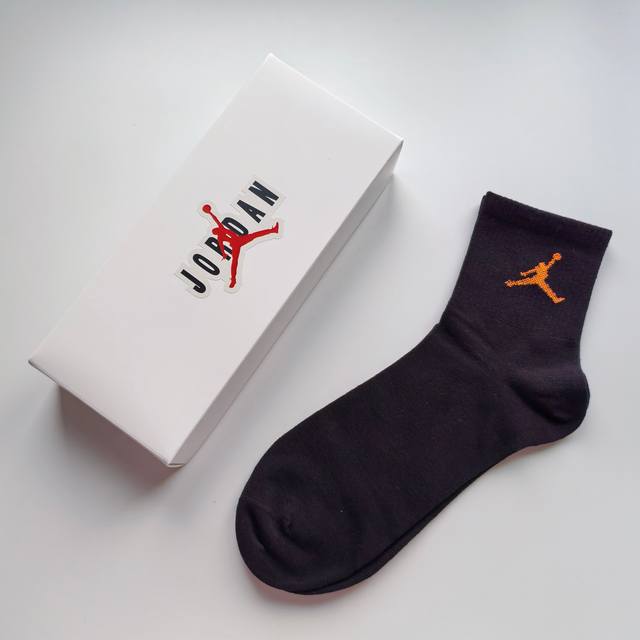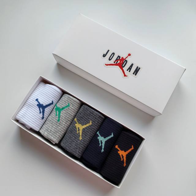 Five pairs per box, high-quality Jordan black, white, grey, navy blue, and color-label mid-calf socks, boxed cotton socks.