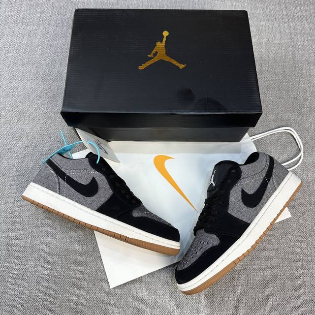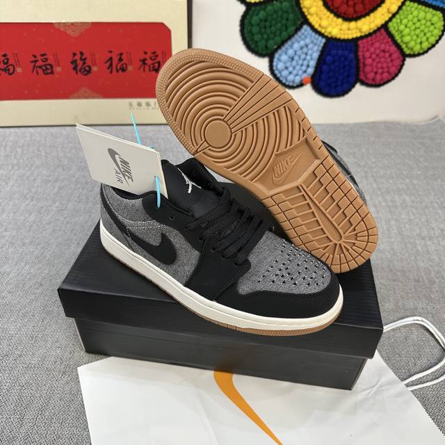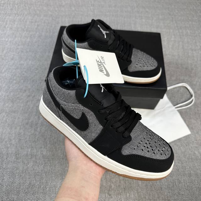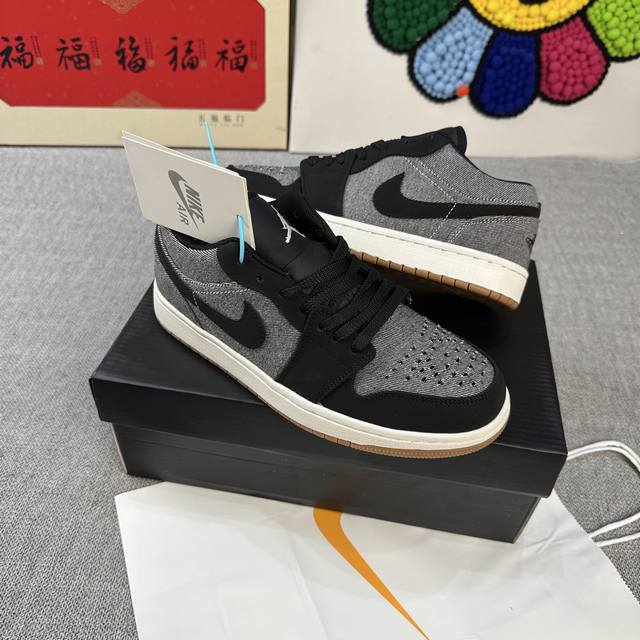 High version Aj Jordan Air Jordan 1 Low wear-resistant and non-slip rubber sole low-top retro sneakers 36-44 black denim