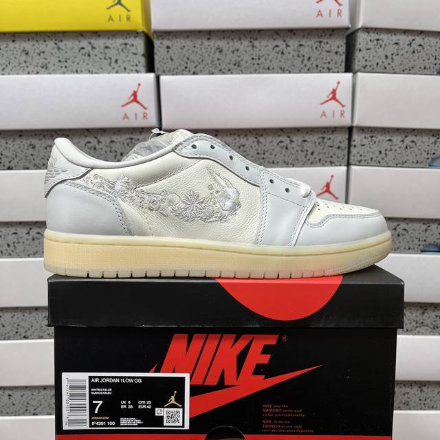Original Air Jordan 1 Low Floral Swoosh AJ1 Floral Embroidery Low-Top Casual Sneakers If4391 100 Ddd Sizes: 36-47.5 DDD DDD