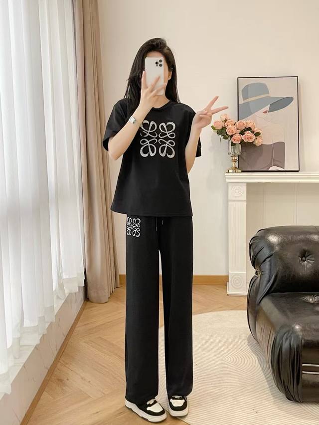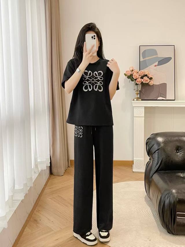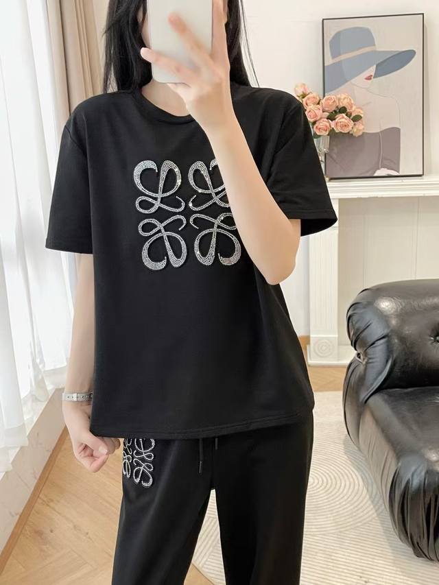 2025 new Loewe casual suit, pure cotton fabric, high temperature hot diamond pro