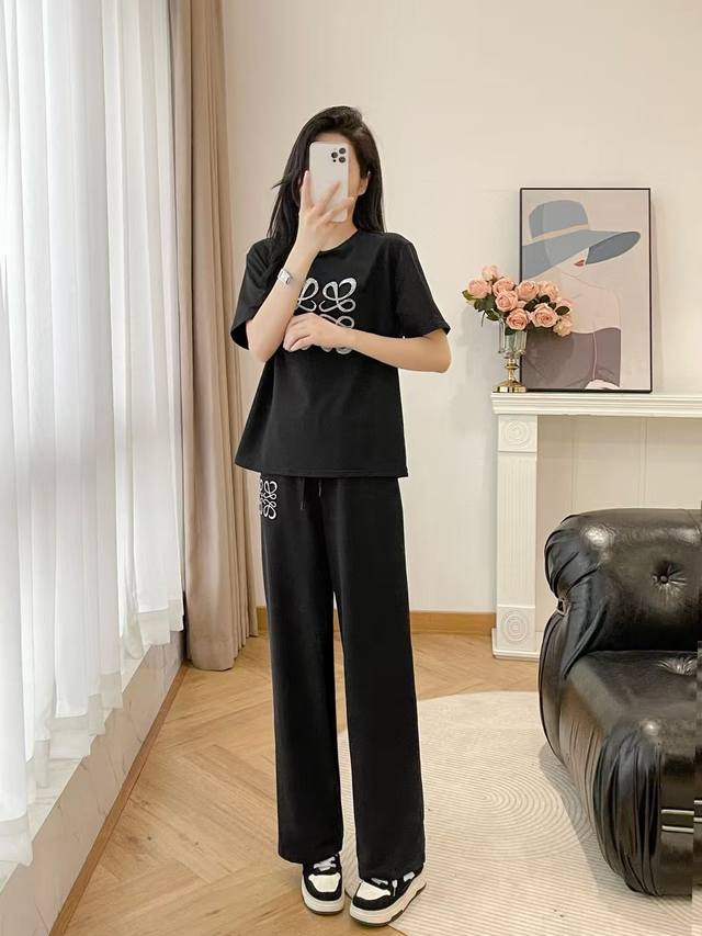 2025 new Loewe casual suit, pure cotton fabric, high temperature hot diamond process, elastic waist design, fashionable style! Sml high quality