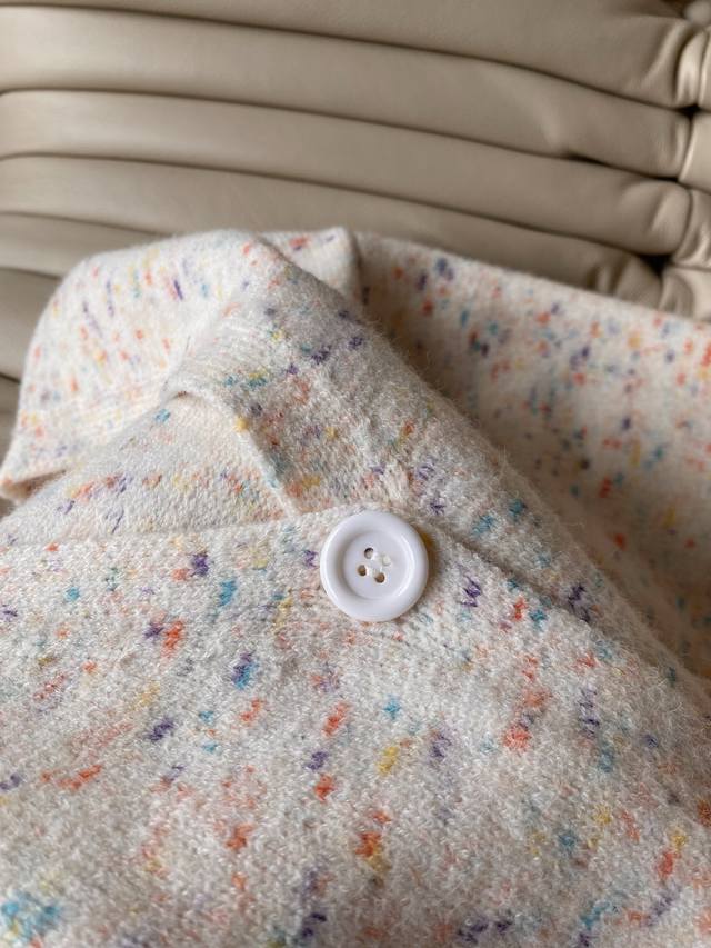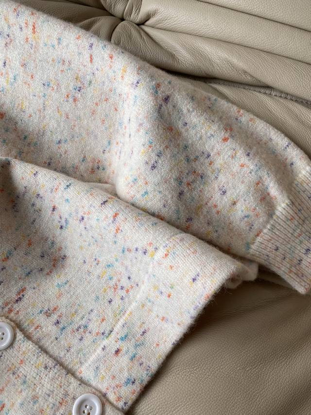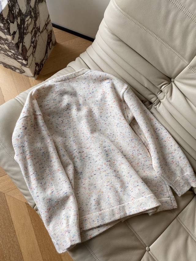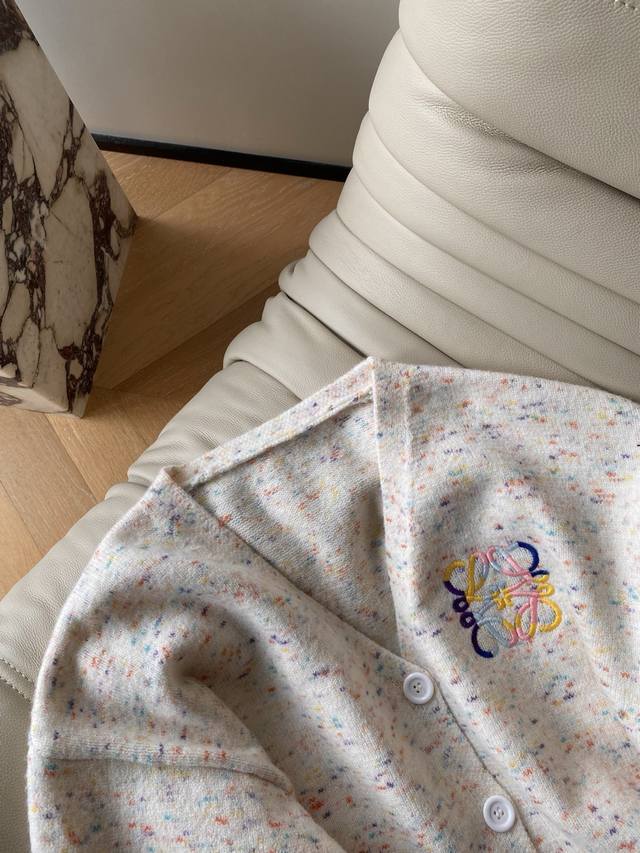 25pf Autumn/Winter Loewe V-neck loose-fit cardigan sweater. Wool and cotton blend knit fabric with delicate texture and moderate drape. V-neck, dropped shoulders, loose and generous silhouette for easy layering and styling. 1 color, 3 sizes