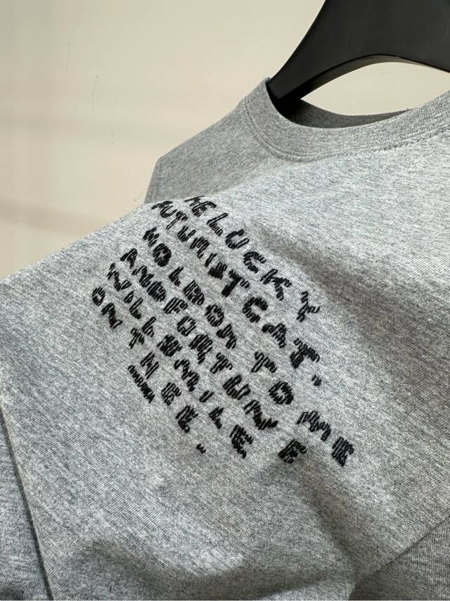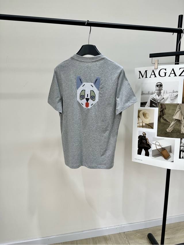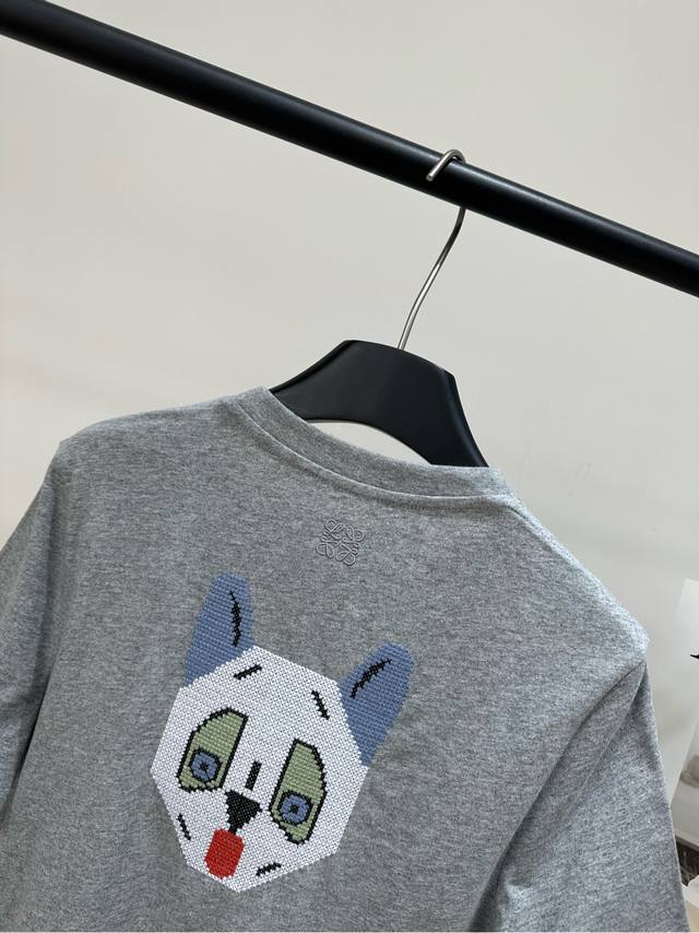 Loe Light Heather Gray Short-Sleeve T-Shirt with Cat Embroidery on the Back DDD. Fabric: Cotton + Spandex DDD Color: Light Heather DDD Loewe