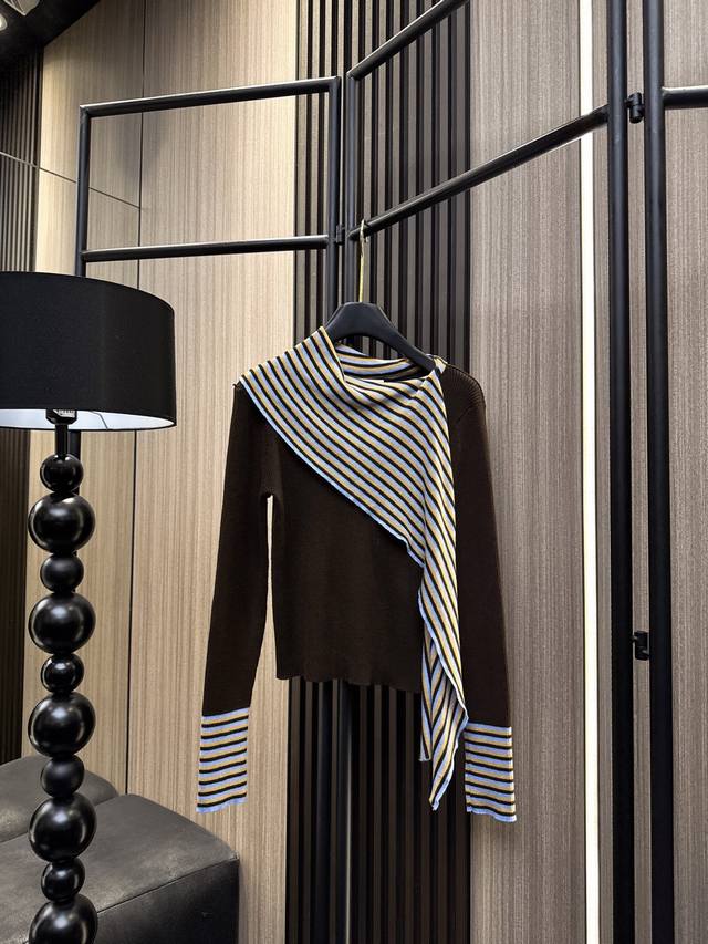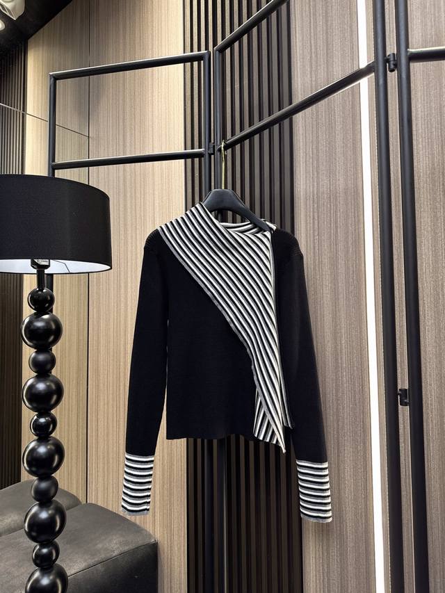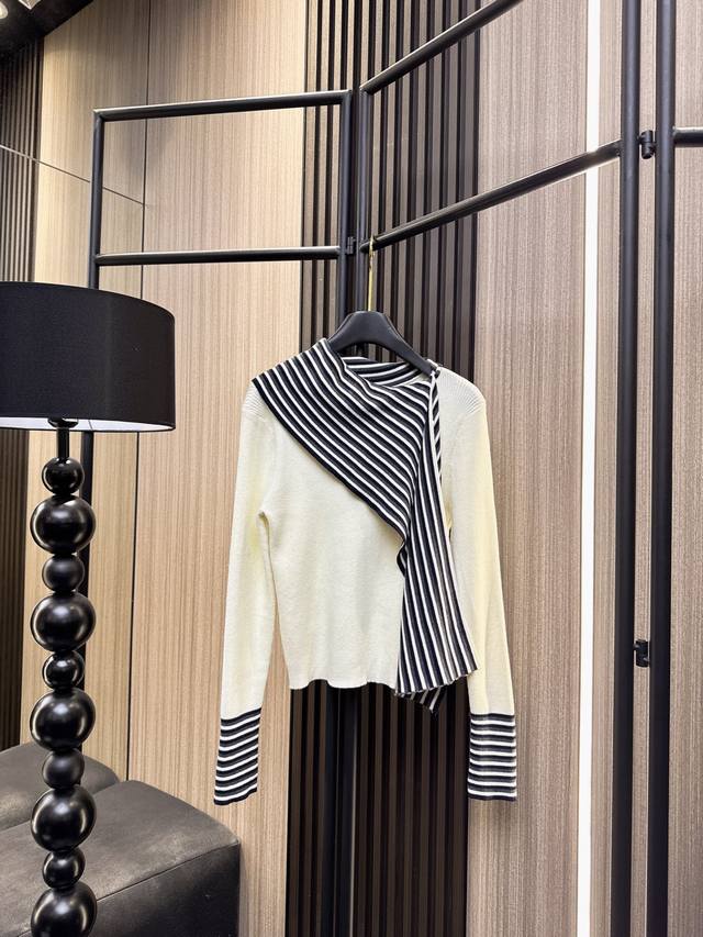 Loewe 2025 Fall/Winter New Arrival: Elegance and Comfort Combined! This new Loewe 70% wool, 30% cotton striped shawl-style fitted base layer top is made from premium fabric that is soft, skin-friendly, warm, and breathable. The stylish striped design paired with the shawl element easily creates a layered look, while the fitted cut accentuates feminine curves. Whether worn as an inner or outer layer, it showcases your unique taste and elegant style. Available in four colors: S, M, L, D, D.
