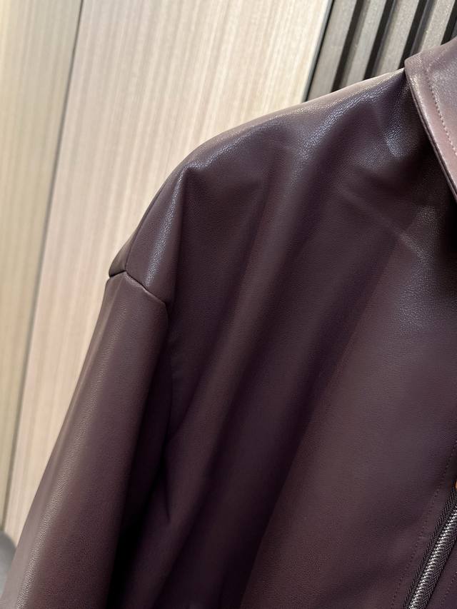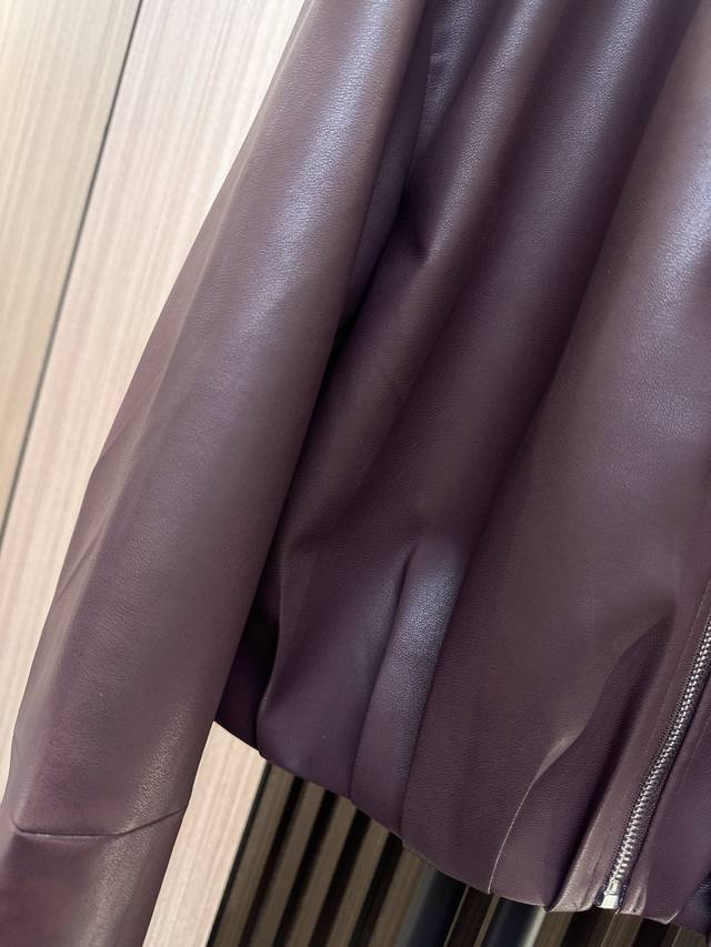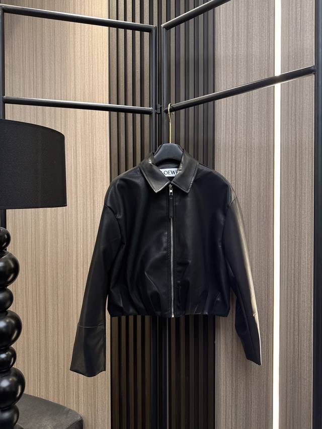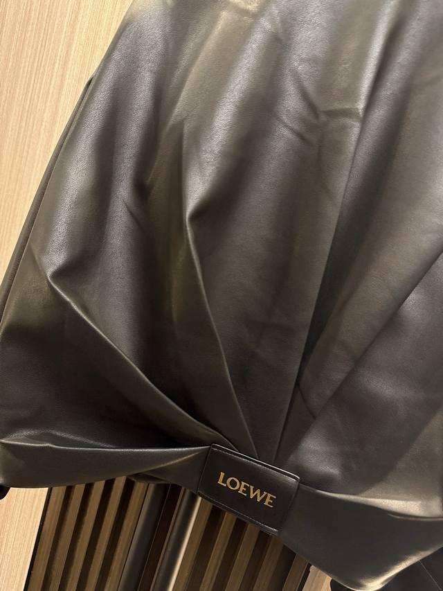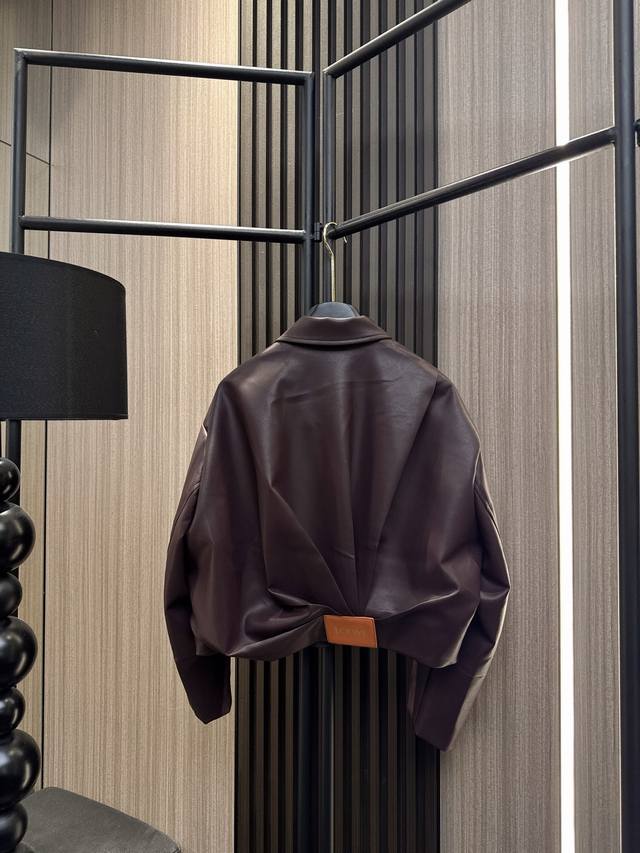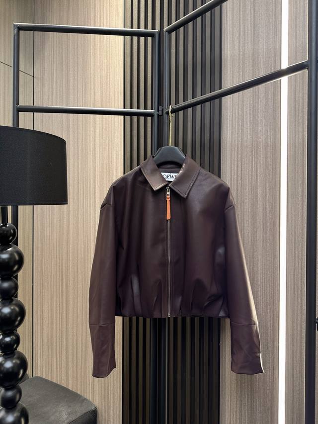 Loewe 2025 Fall/Winter new style interpretation! Selected Pu leather material zipper jacket, unique and exquisite hem pleat design with neat lapel, interprets the modern charm of urban women. Two colors Sml