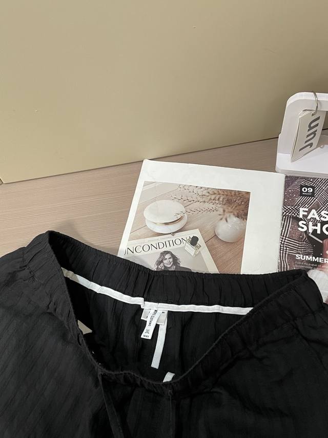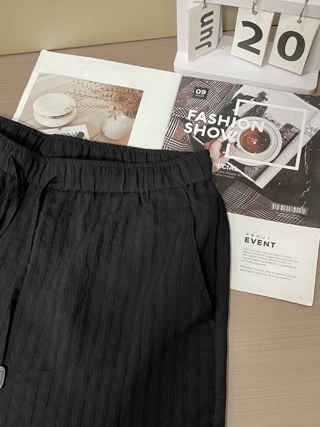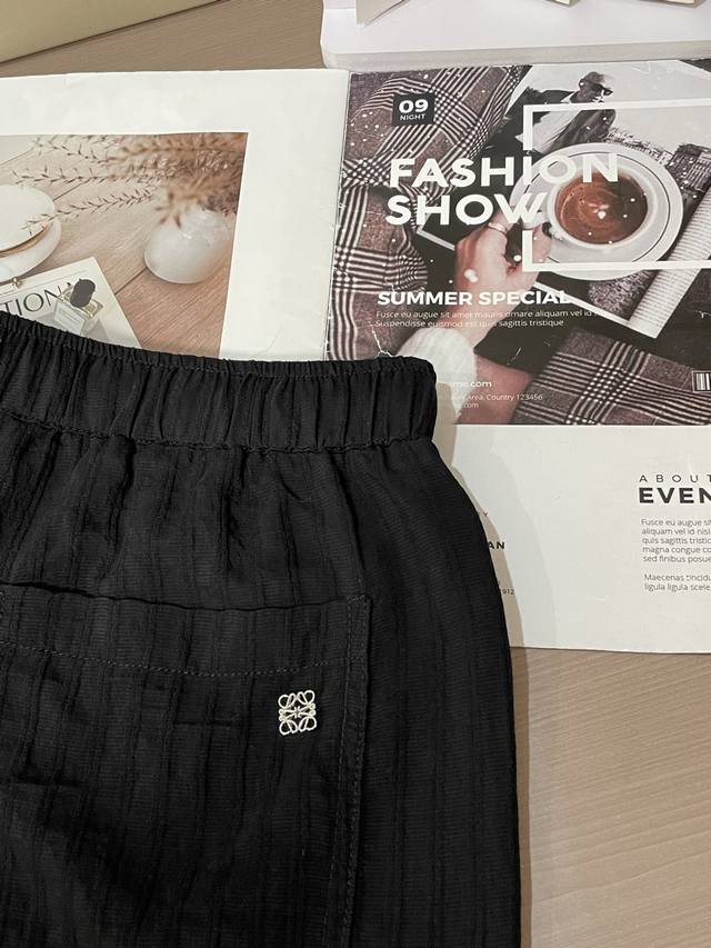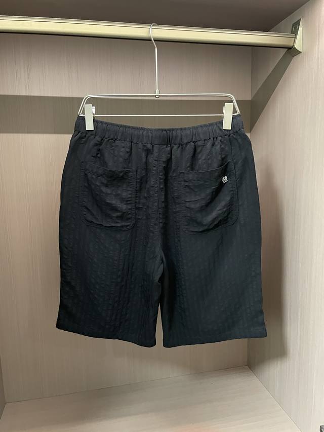 Loewe Black textured shorts, elastic waist + drawstring design, comfortable and