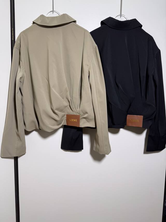 Loewe women's leather patch draped zipper zippered cropped jacket. Smlxl