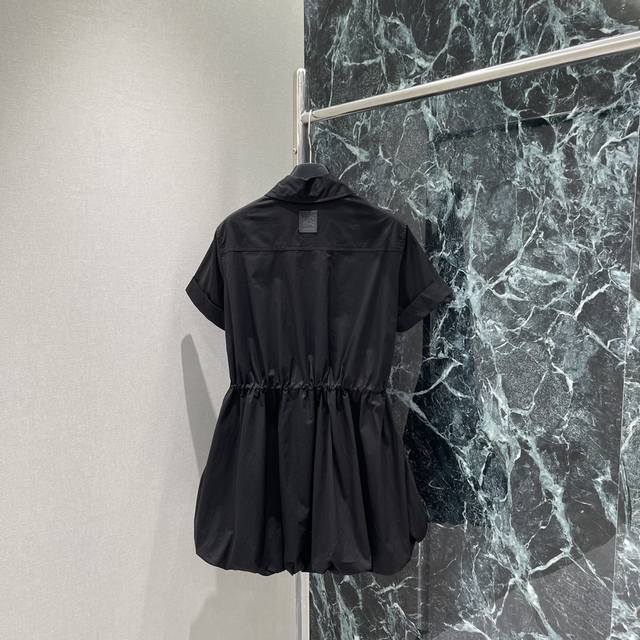 Loewe's new 25th early autumn short-sleeved floral shirt dress features a drawstring waist design with a preppy, sweet feel. The slightly embellished floral hem adds a subtle touch to the look, making it a must-have for a youthful look. The embossed leather patch on the back is understated yet stylish, perfect for both sweet and sassy styles. Available in two colors: Sml
