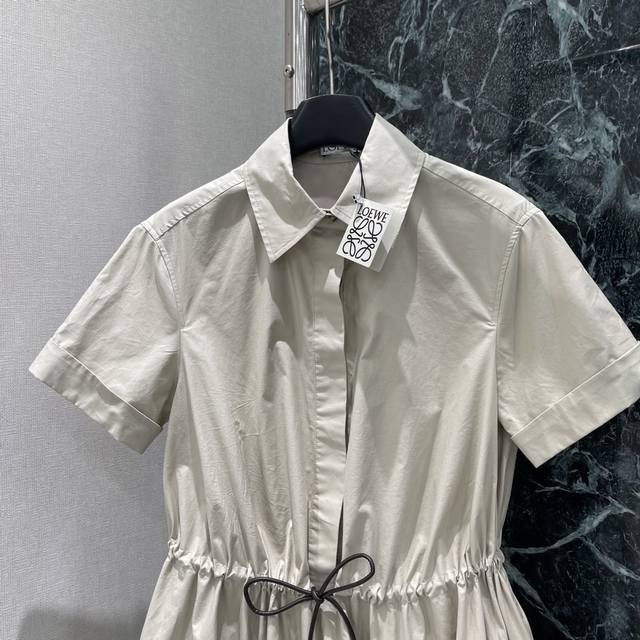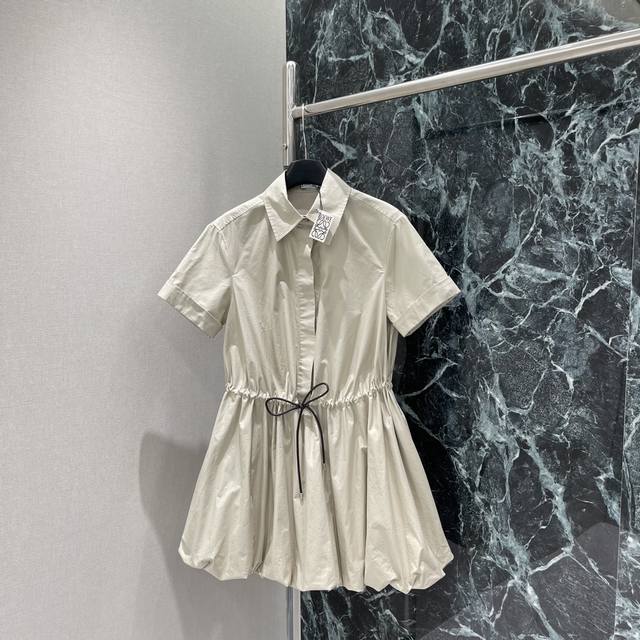 Loewe's new 25th early autumn short-sleeved floral shirt dress features a drawst