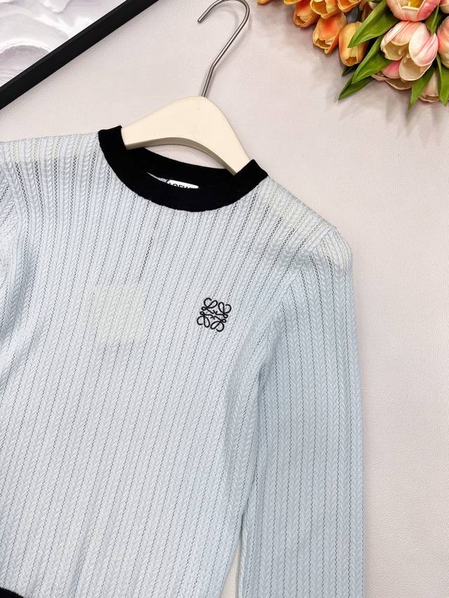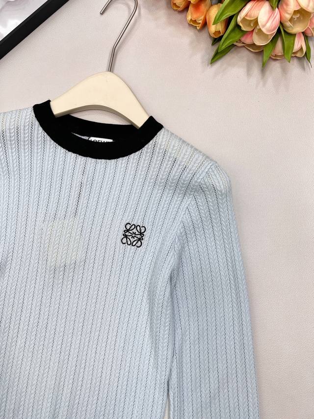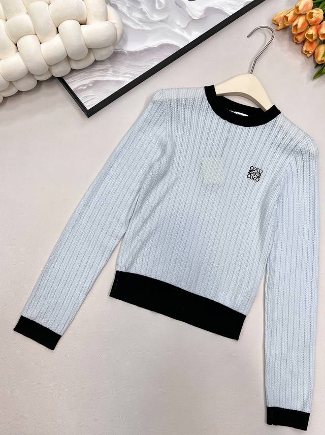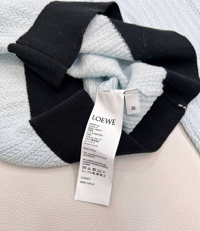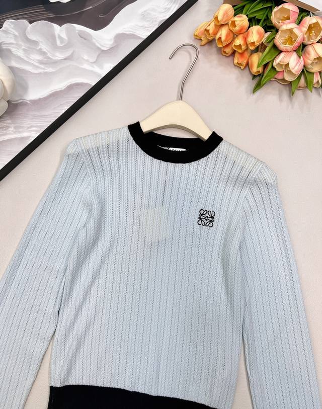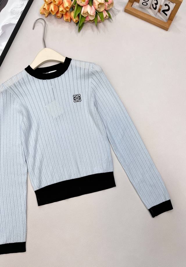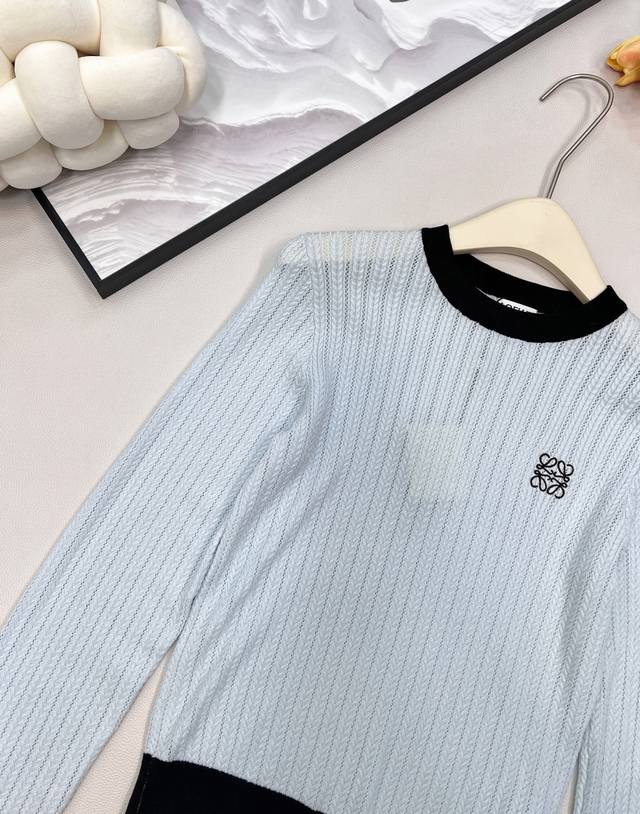 Loewe's new contrasting long-sleeved knit, there must always be a Loewe in your wardrobe! This contrasting knit sweater is uniquely designed. The black and white contrasting borders outline neat lines, breaking the monotony and instantly catching the eye. The exquisite Loewe embroidered logo on the chest subtly highlights the brand style and is a silent declaration of identity and taste.