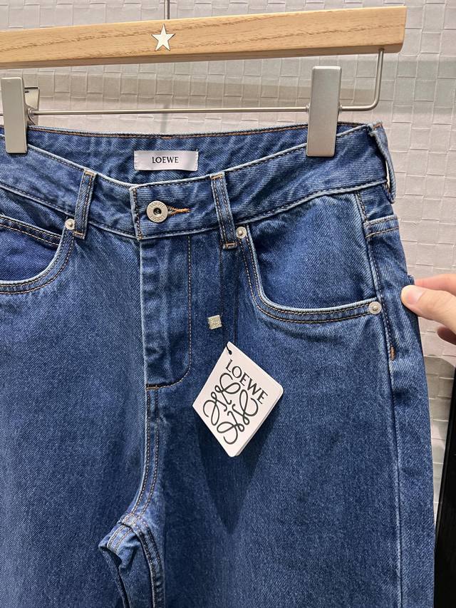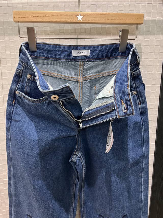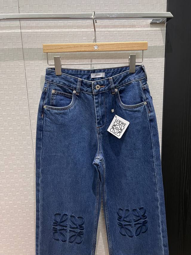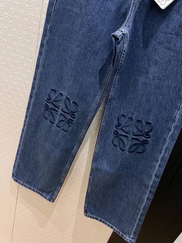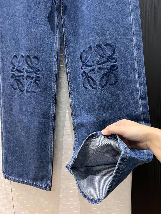 New Arrival Early Autumn Classic Knee Embroidered Loewe Badge Straight Leg Jeans