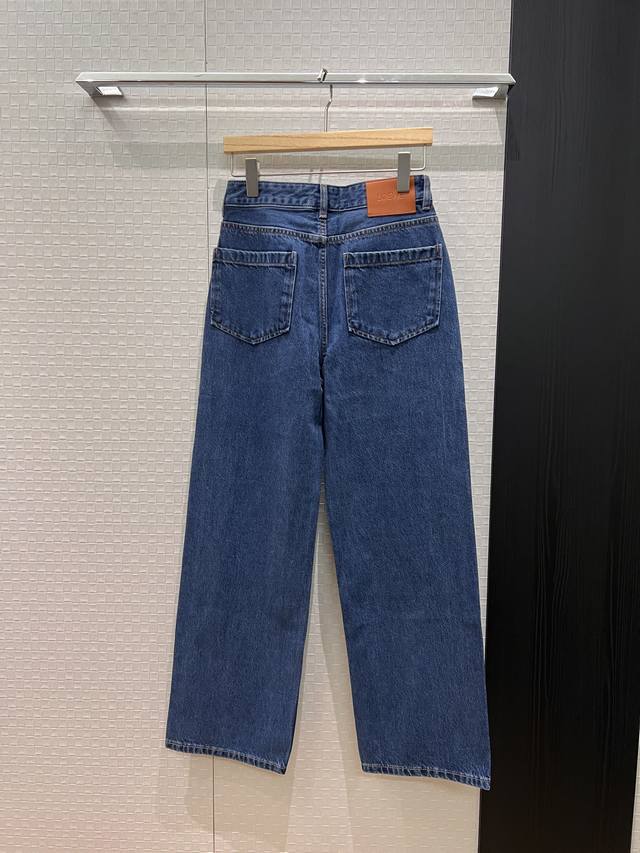 New Arrival Early Autumn Classic Knee Embroidered Loewe Badge Straight Leg Jeans Wide Leg Pants Washed Classic Blue Casual Style Essential for Age Reduction 26-29