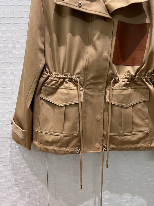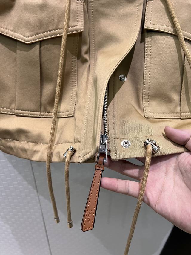 New Arrival Recommendation: Loewe Jacket with epaulettes, large pockets, drawstring waist, classic logo, leather pockets, loose and casual fit, side pockets, youthful and stylish look. Available in black and khaki (Sizes 1-15).
