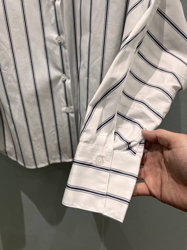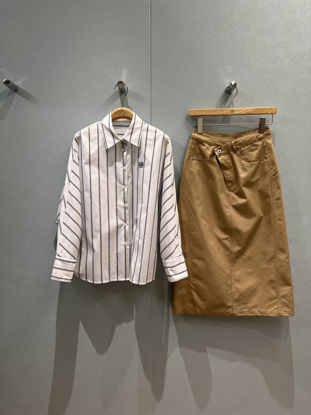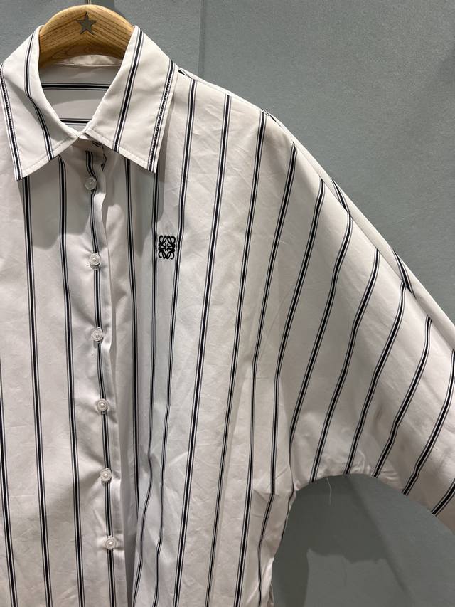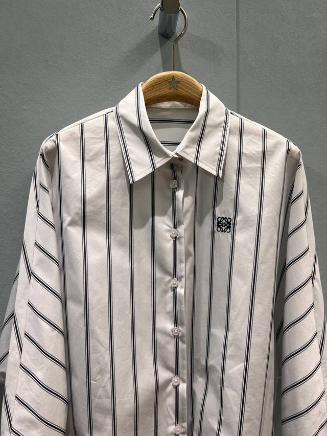 New Loewe embroidered small logo striped shirt full shoulder loose commuting ca