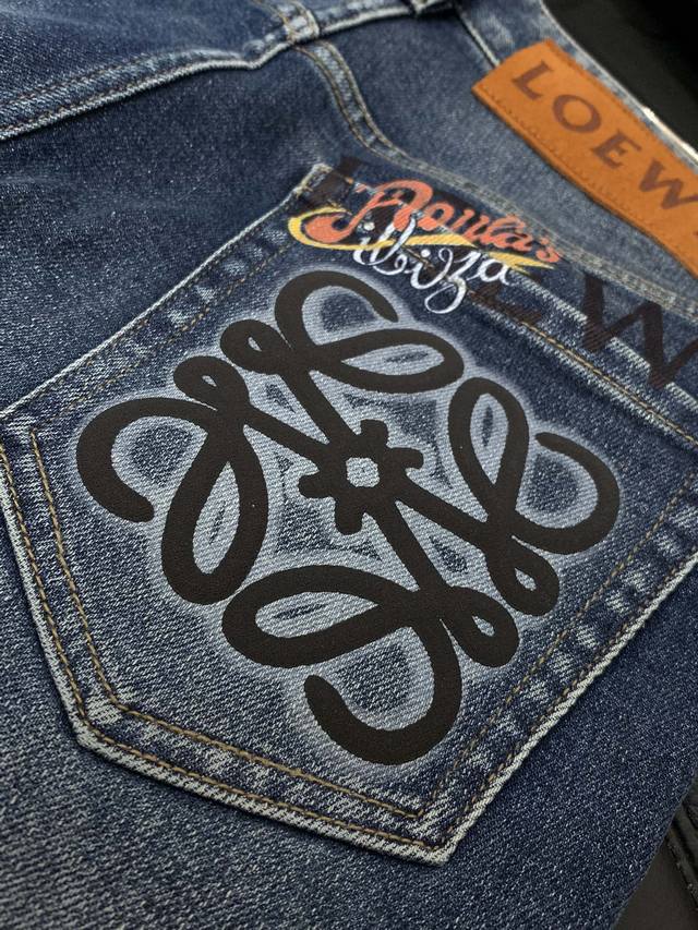 Loewe, 2025 autumn new products, available at the counter at the same time, original single hot goods, fashionable and casual washed stretch jeans, made of imported original washed stretch fabric, top printing craft letter pattern logo, original hardware accessories decoration, unique design, fashionable and handsome upper body, size: 30-38, no 35, 37